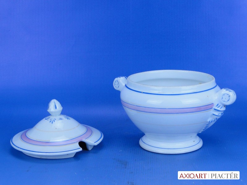 Antik, hibátlan állapotú fedeles porcelán mártásos, szószos kínáló tál.