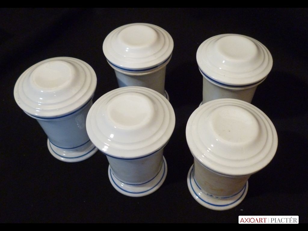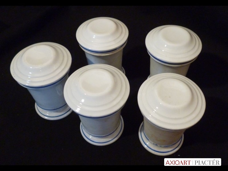 5 db egyforma, hibátlan állapotú, valószínűleg Zsolnay gyógyszertári patika tégely.