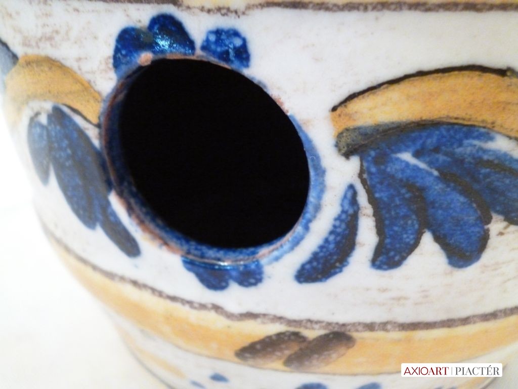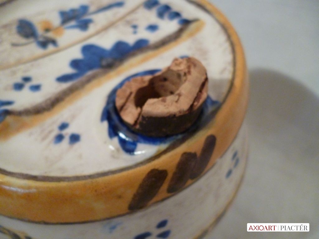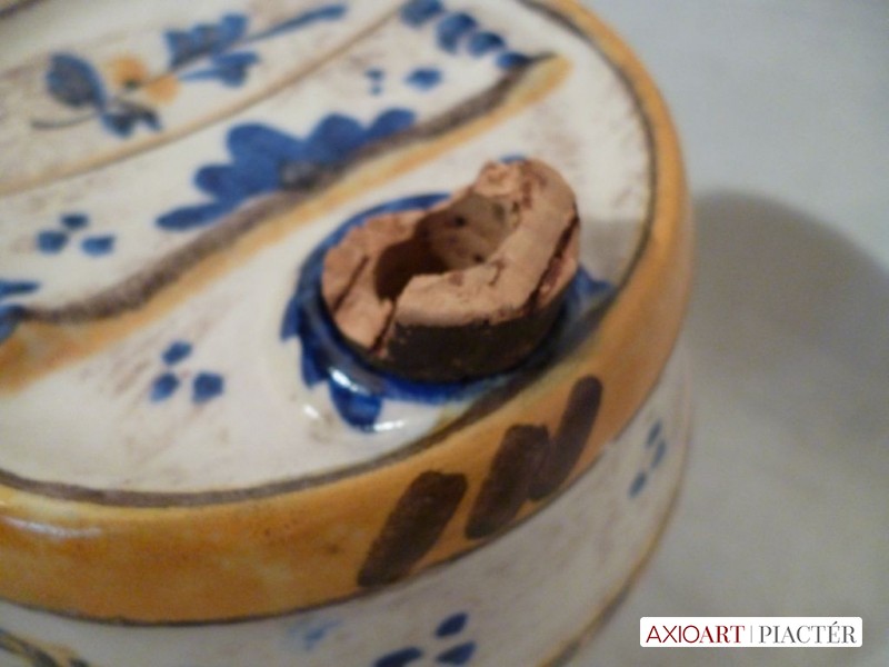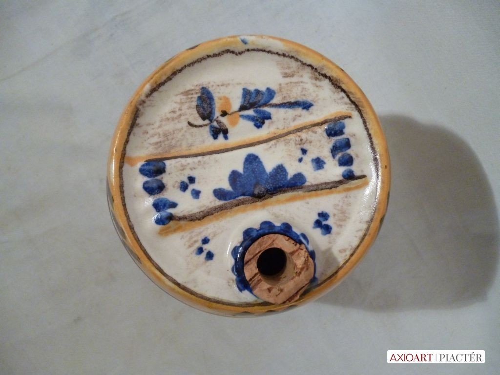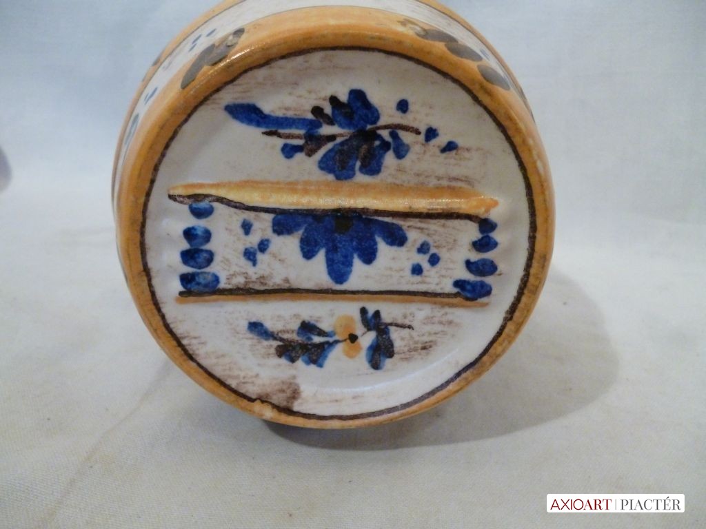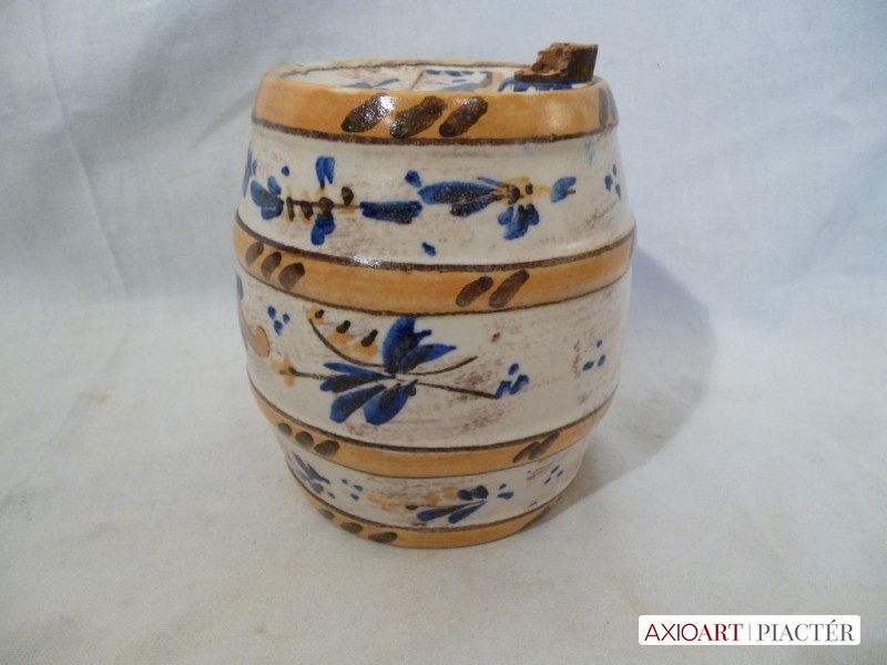 [1201/UZ-N] Antik fajansz hordó, hibátlan állapotú, gyönyörű gyűjtő darab. Magasság: 13.5 cm Szélesség: 15 cm   Magassága 13,5 cm, szélessége 15 cm.