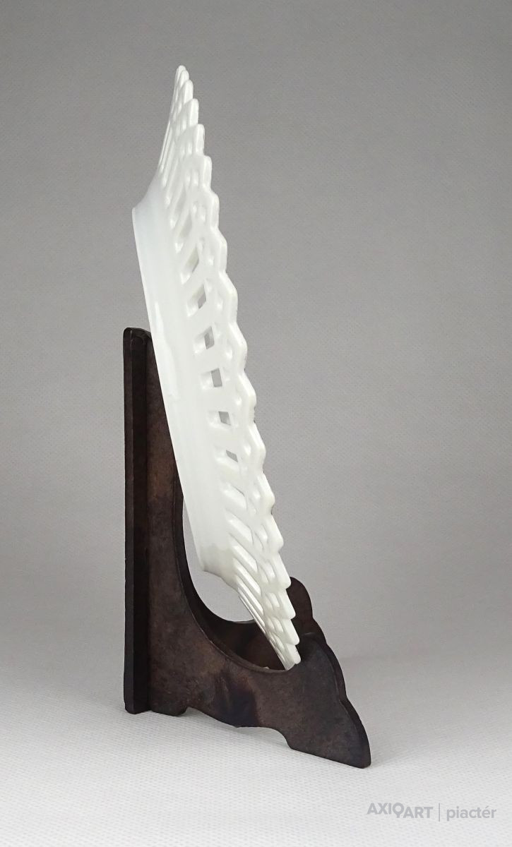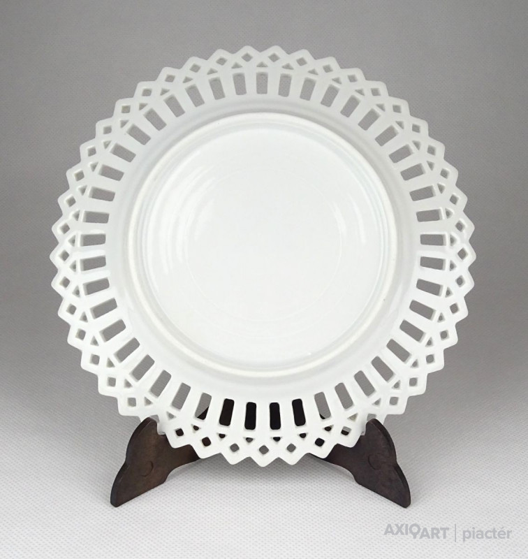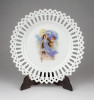 Antik hibátlan állapotú, áttört szélű, porcelán dísztányér. A tányért egy éjt hozó tündér és két puttó, angyal díszíti.