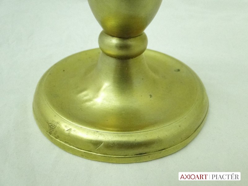 Nagyon régi két darabra szedhető szétcsavarozható réz gyertyatartó. Talpán kisebb horpadás nyomokkal.