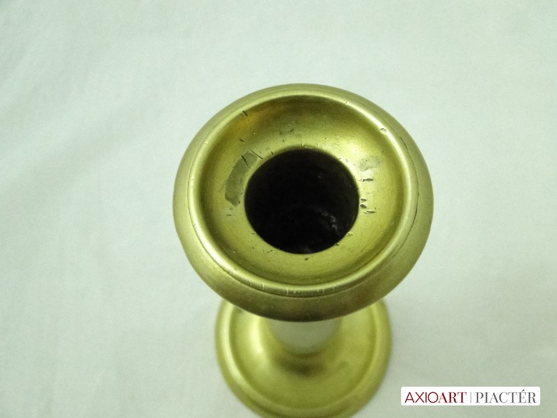 [7892/Y013/3] Nagyon régi két darabra szedhető szétcsavarozható réz gyertyatartó. Talpán kisebb horpadás nyomokkal. Magasság: 20.5 cm Szélesség: 11 cm Súly: 0.475 kg