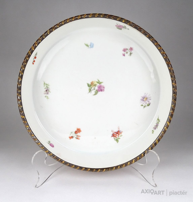 Antik RITKA virágdíszes porcelán-kerámia sütőtál pités tál 27 cm