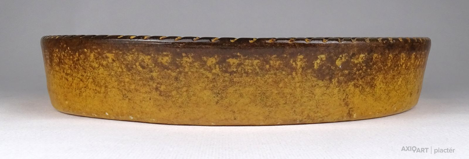 Antik, nagy méretű, szép állapotú sütőtál, pite sütő tál. Külseje kerámia hatású, belső fele virágdíszes mázas porcelán felület.