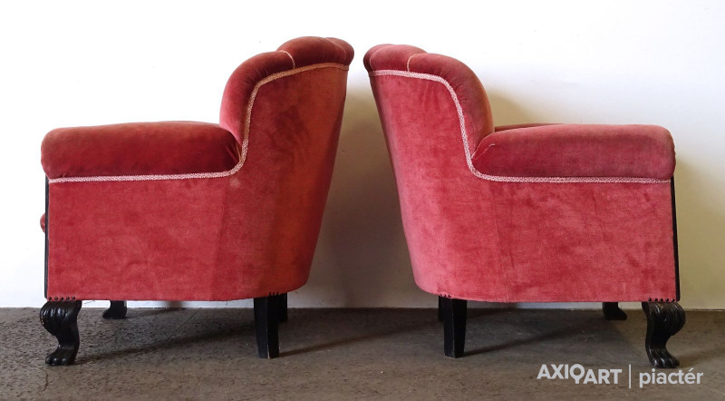 Antik rózsaszín kárpitozott oroszlánlábas BERGER fotel pár
