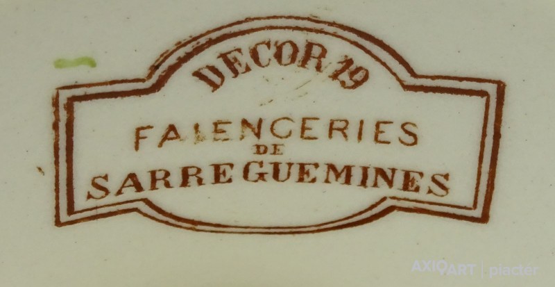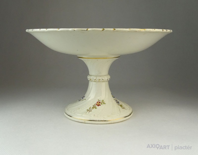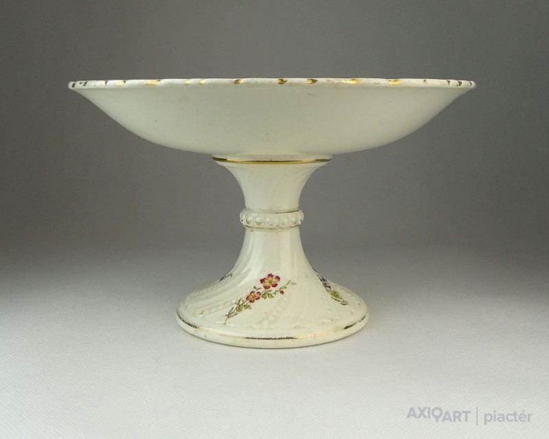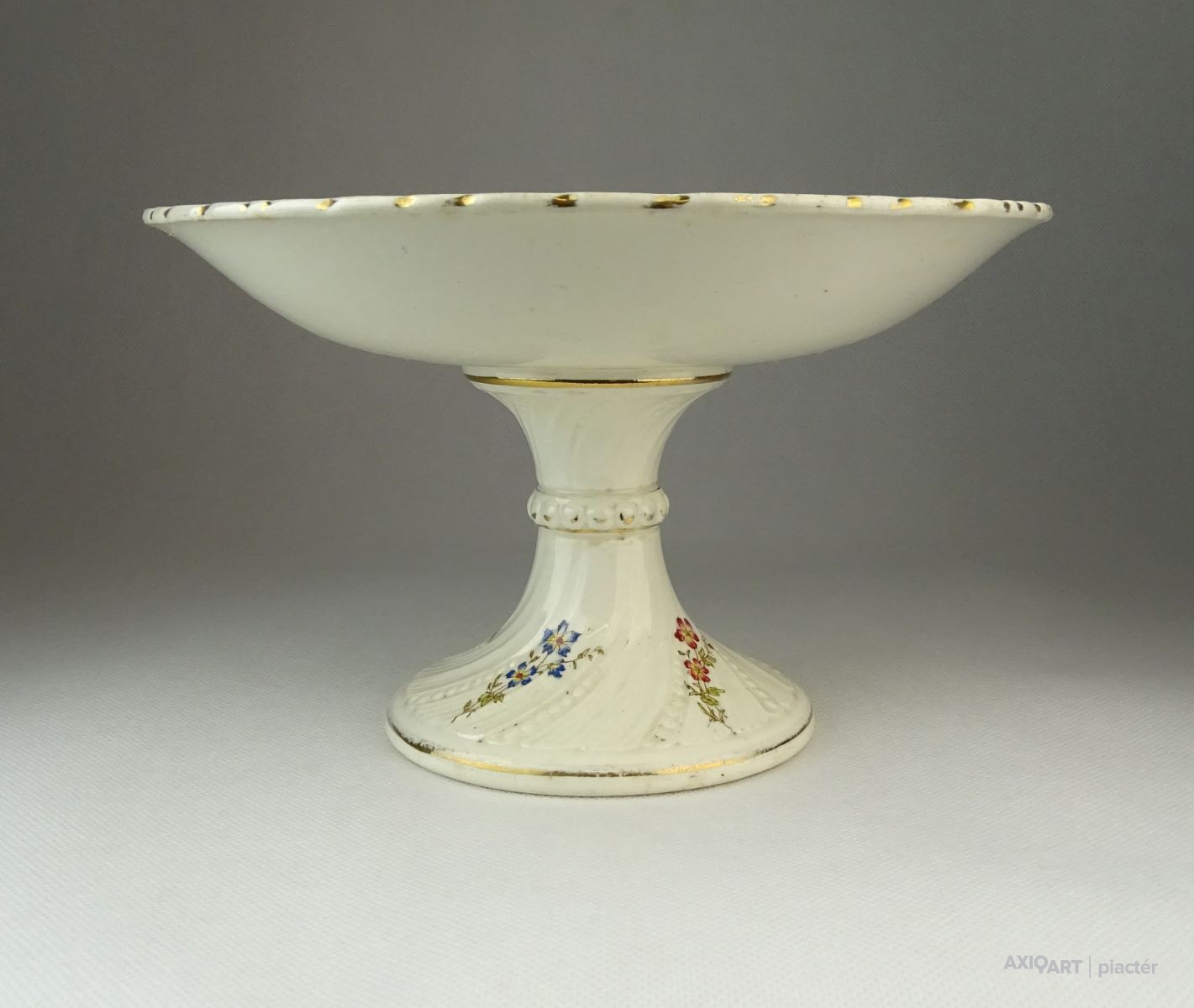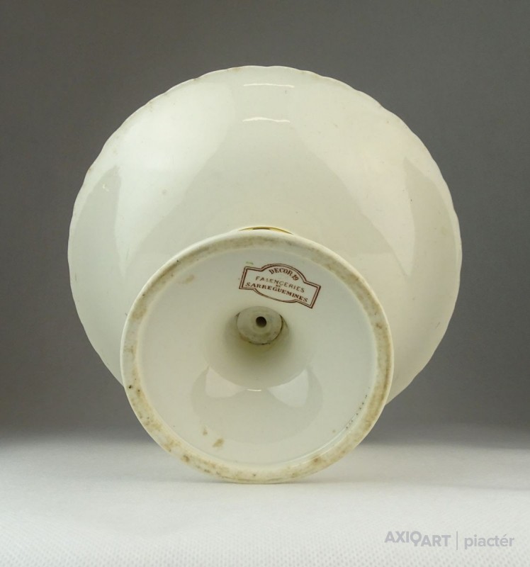 [0P906/X052] Antik, hibátlan állapotú, apró virágdíszes, jelzett, francia fajansz tortatál, süteményes tál vagy gyümölcskínáló tál. Alján jelzés: FALENCERIES DE SARREGUEMINES DECOR 19 Magasság: 14 cm Szélesség: 23 cm Súly: 0.805 kg