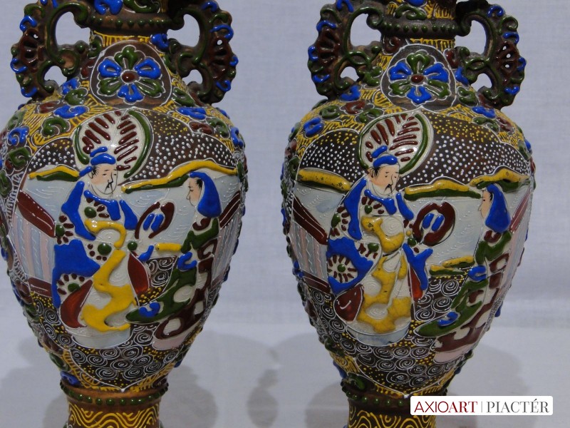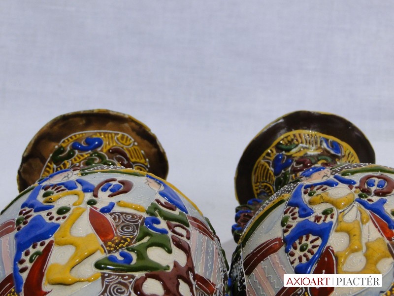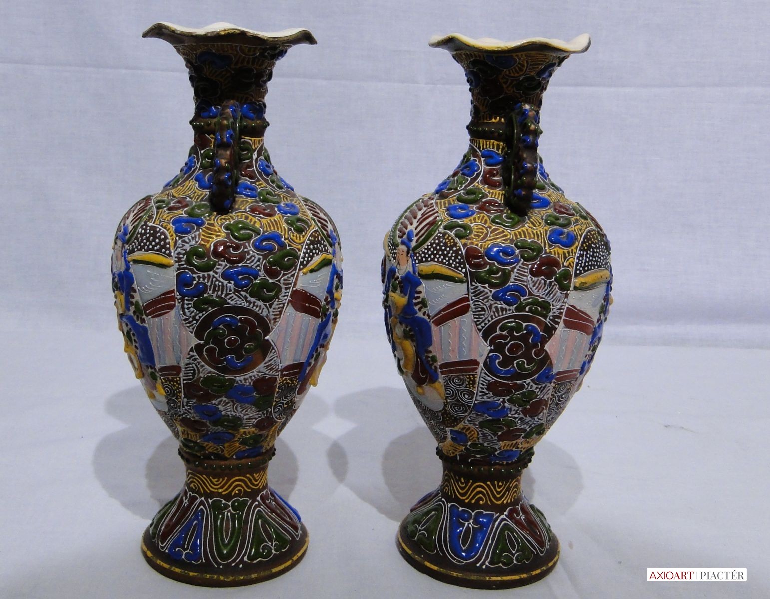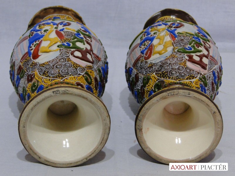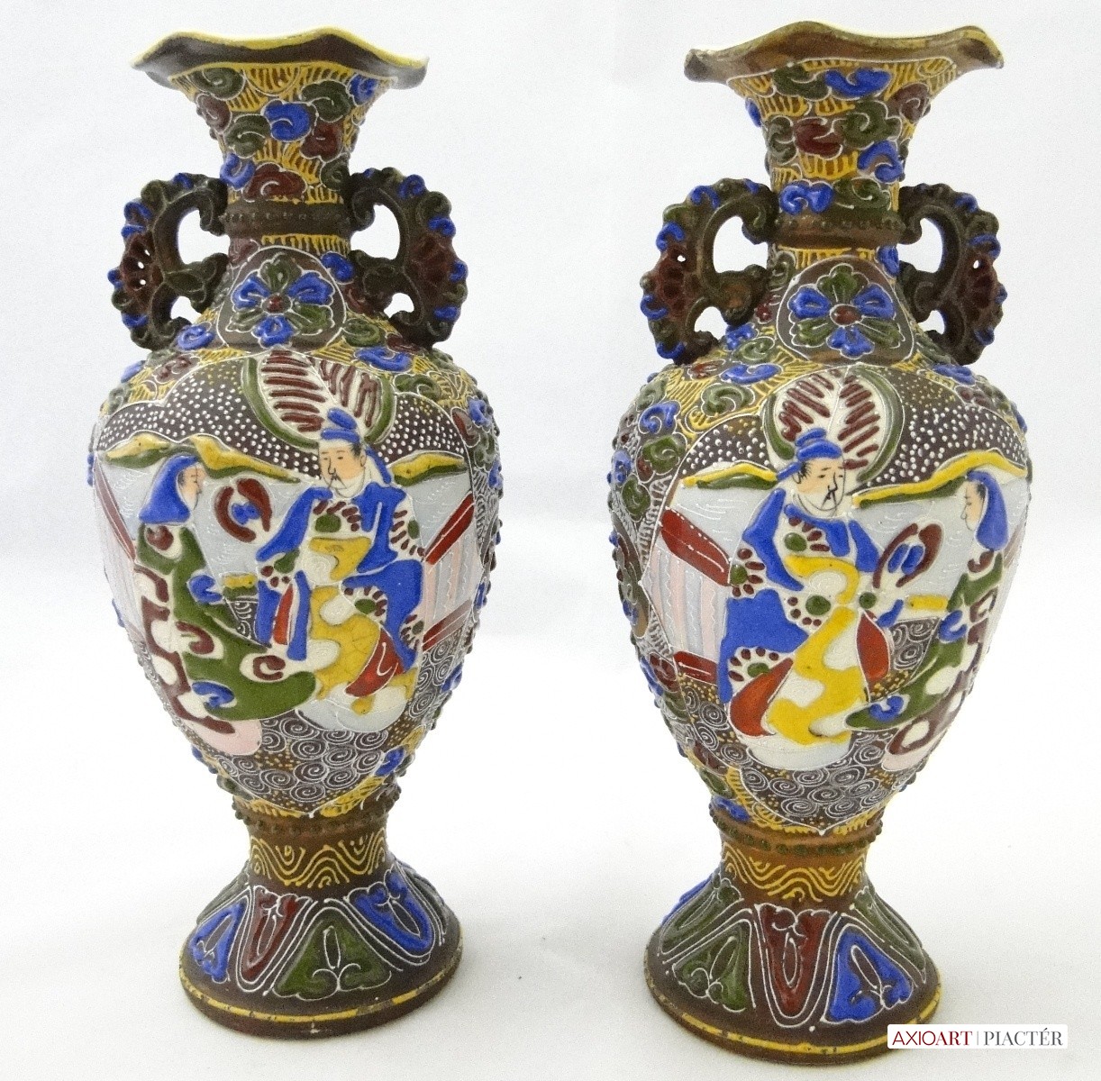 20. század elejéről való 2 db egyforma japán Satsuma váza párban. Szép állapotú darabok.