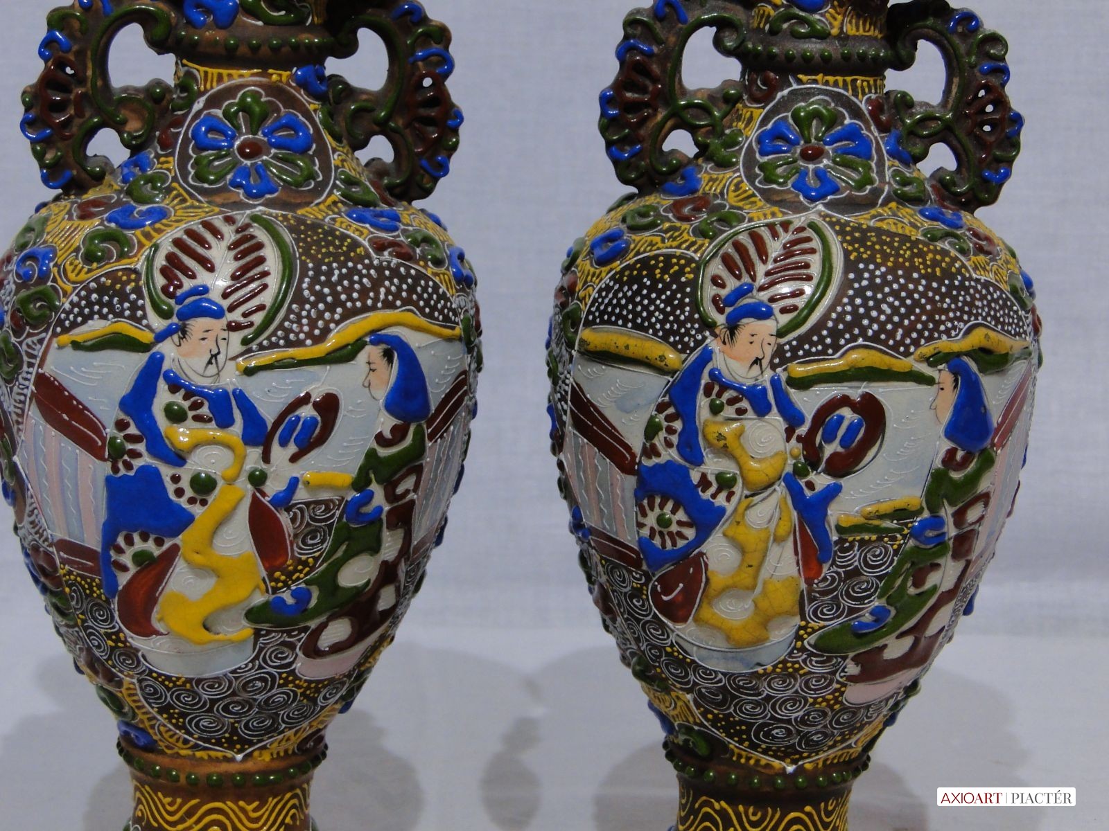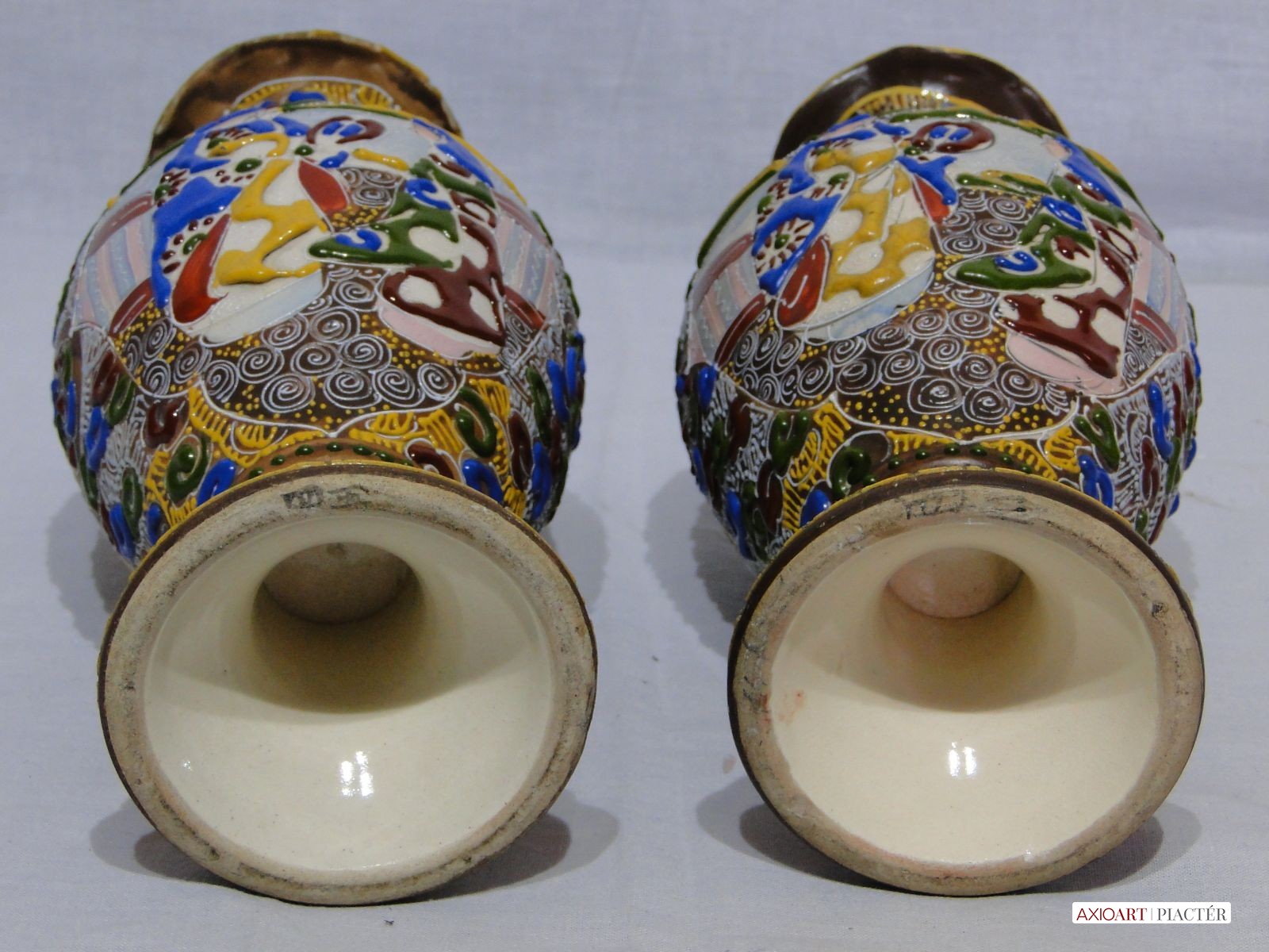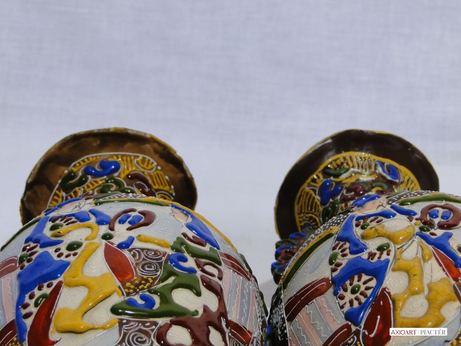 20. század elejéről való 2 db egyforma japán Satsuma váza párban. Szép állapotú darabok.