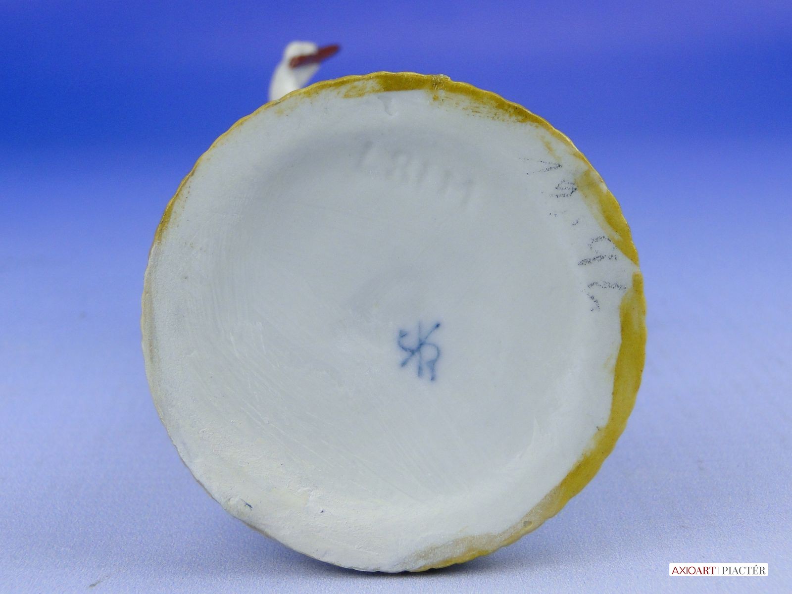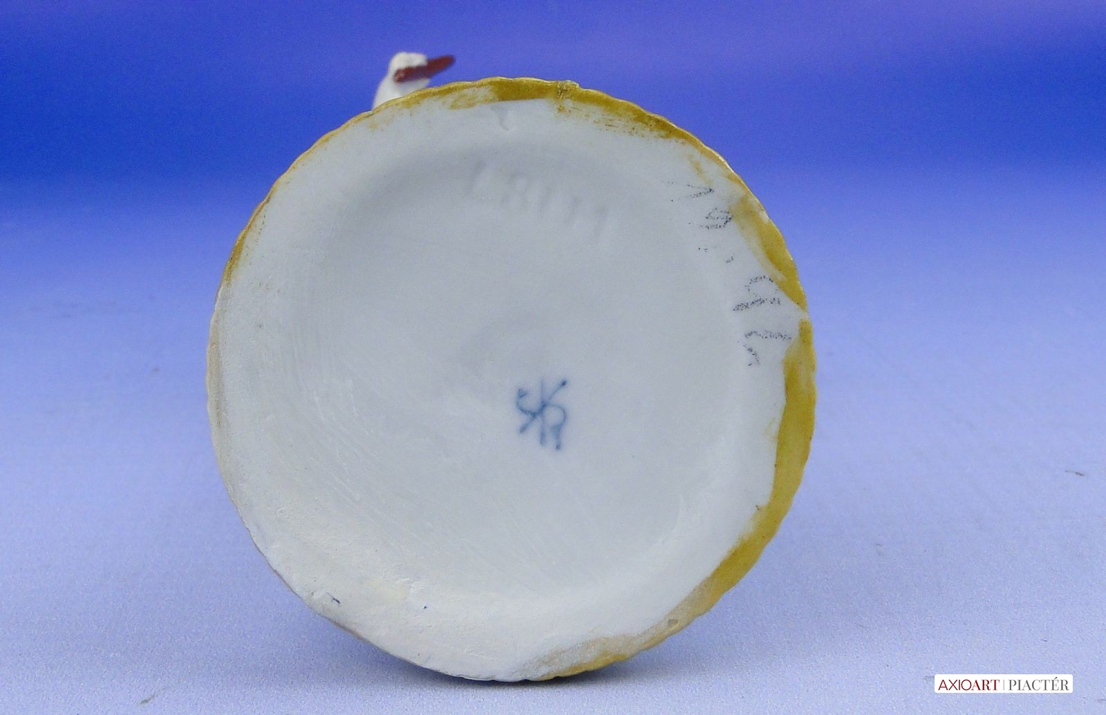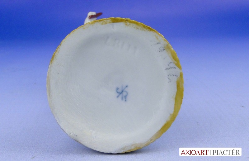 [0D917/VTR-11] Hibátlan állapotú, antik jelzett, talapzaton álló kisméretű porcelán karmester meztelen kisfiú figura. Alján kék jelzés: ( SCHEIBE - ALSBACH THÜRINGEN) Magasság: 10.5 cm Szélesség: 6.5 cm Súly: 0.065 kg