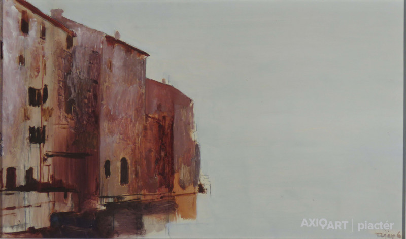 [FKD040/Bp403/58] A kép mérete: 44 x 75 cm keret nélkül. Készült: Olaj, Farostlemez A kép Fejér Csaba (Karcag, 1936) alkotása. Jelezve jobbra lent "Fejér Cs." A festmény jó állapotban van. Keret: Ép Magyar festők és grafikusok életrajzi lexikona I-II. Festő. 1954-1959 között a budapesti Iparművészeti Főiskolán Rákosi Zoltán és Z. Gács György voltak a mesterei. Hódmezővásárhelyen élt és alkotott. Több európai országban járt tanulmányúton. Ez idáig mintegy 20 kisebb-nagyobb önálló tárlata volt. 1960-tól rendszeres résztvevője az országos tárlatoknak - köztük az alföldi rendezvényeknek, illetve a hatvani Táj- és Portrébiennáléknak -, valamint a magyar művészet külföldi bemutatóinak. Szerepelt a vásárhelyi iskola budapesti retroszpektív kiállításain. Fejér Cs. a Vásárhelyi Őszi Tárlatok egyik legrangosabb és rendszeres kiállítója. Díjak: Derkovits-ösztöndíj; 1963-ban a FKS-díj; Tornyai-plakett; Koszta-emlékérem; a római Magyar Akadémia ösztöndíja; a VII. Szegedi Nyári Tárlaton Szeged város díja; a Csongrád megyei Tanács alkotói díja; a Hatvani Tájképbiennále közönségdíja. Az alföldi realisták örökségét etikai alapon felújító vásárhelyi iskola második nemzedékének kiváló képviselője. Az alföldi művészet realista hagyományai lírai-szürrealisztikus vonásokkal telítődnek képein. Az alföldi iskola hagyomány köréből kiinduló, műves érzékenységű festő, alkotásaiból nyugalom, harmónia, türelmes szépségkeresés szól hozzánk. Mindezt két szín, a szürke és a barna sokhangú regiszterén, lebilincselő mívességgel, a gesztusfestészet eszközbeli eredményeinek egyéni asszimilálásával adja elő. Alkotásait őrzi a Magyar Nemzeti Galéria, a békéscsabai Munkácsy Mihály Múzeum és a hódmezővásárhelyi Tornyai Múzeum. (MÉ, M.Gy.: Műv. 1970/5, Tasnádi Attila adatközlése nyomán) Magyar festők és grafikusok adattára 1959-ben diplomázott az Iparművészeti Főiskola díszítőfestő szakán, mesterei Z. Gács György és Rákosi Zoltán voltak. Tanulmányúton Ausztriában, Olaszországban és Bulgáriában járt. 1966 óta Hódmezővásárhelyen, 1968-ban Bécsben, 1972-ben a Műcsarnokban és Szegeden, 1973-ban Wiesbadenben, 1974-ben Pécsett, 1975-ben Szófiában, 1976-ban Budapesten a Csók Galériában rendezett önálló kiállítást. A Vásárhelyi Őszi Tárlatok egyik legrangosabb és rendszeres kiállítója. 1962-1965-ben Derkovits-ösztöndíjat kapott. 1966-ban elnyerte a Tornyai-plakettet, 1968-ban a Koszta-érmet, 1971-ben Szeged város művészeti díját. Az alföldi iskola hagyományköréből kiinduló, műves érzékenységű festő, képeiből nyugalom, harmónia, türelmes szépségkeresés szól hozzánk. Az alföldi festészet realista hagyományai lírai-szürrealisztikus vonásokkal telítődnek képein. Részletgazdagon bontja ki az alföldi táj szépségeit, fedezi föl a hétköznapi tárgyak varázsát. Összefoglal, a lényegre tör. - Irod.: P. Sz. T.: Művész életrajzok. - MK Magyar festők és grafikusok életrajzi lexikona I-II. Műgyűjtők és kereskedők kézikönyve Festő. A budapesti Iparművészeti Főiskolán Z. Gács György és Rákosi Zoltán voltak a mesterei. Számos európai országban járt tanulmányúton. Hazai és külhoni tárlatokon szerepelt (Műcsarnok, Csók Galéria, Szeged, Hódmezővásárhely, Pécs, Bécs, Wiesbaden, Szófia). A Vásárhelyi Őszi Tárlatok egyik legrangosabb és rendszeres kiállítója. 1962-65 között Derkovits-ösztöndíjban részesítették, 1963-ban a Fiatalok Stúdiójának tárlatán nyert díjat. 1966-ban Tornyai-plakettet, 1968-ban Koszta emlékérmet kapott. Az alföldi festészet realista hagyományai lírai-szürrealisztikus vonásokkal telítődnek képein. Az alföldi iskola hagyomány köréből kiinduló, műves érzékenységű festő, képeiből nyugalom, harmónia, türelmes szépségkeresés szól hozzánk. (Mé, M.GY.: Műv.-1970/5) Művész életrajzok kortárs magyar képzőművészek 1959-ben kapott díszítőfestő-diplomát az Iparművészeti Főiskolán, mesterei Z. Gács György és Rákosi Zoltán voltak. Tanulmányúton Ausztriában, Bulgáriában és Olaszországban járt. 1966 óta Hódmezővásárhelyen dolgozik. 1967-ben itt, 1968-ban Bécsben, 1972-ben a Műcsarnokban és Szegeden, 1973ben Wiesbadenben, 1974-ben Pécsett, 1975-ben Szófiában, 1976-ban a Csók Galériában, 1978-ban Veszprémben, 1980-ban a Csontváry Teremben, 1982-ben Sopronban jelentkezett nagyobb anyaggal. 1962-1965-ben Derkovits-ösztöndíjat, 1966-ban Tornyai-plakettet, 1968-ban Koszta-érmet kapott; 1971-ben elnyerte Szeged város művészeti díját. - Az alföldi iskola hagyományköréből kiinduló, műves érzékenységű festő; képeiből nyugalom, harmónia, türelmes szépségkeresés és találás szól hozzánk. Részletgazdagon bontja ki az alföldi táj humanisztikus szépségeit, fedezi fel a hétköznapi tárgyak varázsát. Izgalmasan érdekes csendéletfestő és lényegretörő portréista.