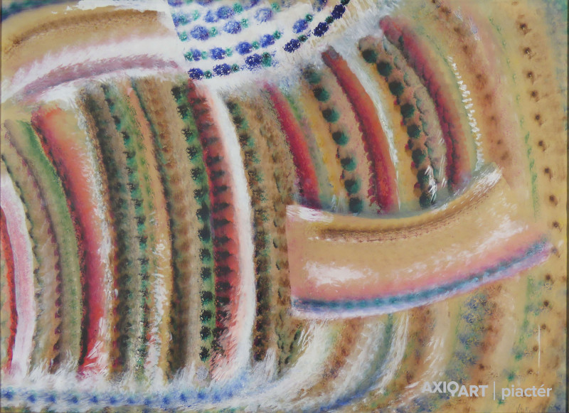 [FKD049/Bp9/42] A kép mérete: 73 x 102 cm keret nélkül. Készült: Akrill, Papír A kép Vinkler László (Szabadka, 1912, Szeged, 1980) alkotása. Jelezve jobbra lent "Vinkler László" A festmény jó állapotban van. Keret: Ép Magyar festők és grafikusok életrajzi lexikona I-II. Festő. Tanulmányait Lápossy-Hegedűs Géza irányításával kezdte. A budapesti Képzőművészeti Főiskolán Glatz Oszkár és Karlovszky Bertalan tanítványa volt. 1935-ben diplomázott. 1933-ban a főiskola jubileumi tárlatán a "Nagymamám" című alkotásával elnyerte a Balló-díjat. 1935-1936-ban római ösztöndíjas volt, és a Collegium Hungaricum-ban töltött nyolc hónapot. Szorgalmasan dolgozott, közben tanulmányokat folytatott az Accademia delle Belle Arti freskó-osztályán, Ferazzi irányítása mellett. Az itt készült "Maria Surigia" című képmását 1936-ban a Collegium Hungaricum kiállításán mutatta be, amelyet az olasz állam vásárolt meg. A "Római szobrásznő" című képe 1937-ben elnyerte a Jellinek-díjat. Az alkotás jelenleg a Magyar Nemzeti Galéria tulajdona. Számos kelet- és nyugat-európai országban járt tanulmányúton. 1931-től szerepelt hazai és külföldi bemutatókon. Egyéni kiállításai voltak Szegeden (1942, 1958, 1963, 1972), az Ernst Múzeumban (1959), Olaszországban (1961), Jugoszláviában (1968). Nagyobb anyaggal szerepelt a szegedi művészek 1967-es Magyar Nemzeti Galéria-béli kiállításán. 1932-ben Balló-díjat, 1937-ben Fényes Adolf-díjat kapott, 1972-ben Szeged város alkotói-díját, 1979-ben a Szegedi Nyári Tárlat díját nyerte el. Éveken keresztül (tizenöt év megszakítással) a szegedi Tanárképző Főiskola rajzi tanszékének vezetőjeként működött. Korábban protréfestőként volt ismeretes. Karlovszky mellett a rajz kultuszára és a csendéleti formalátásra kapott indíttatásokat, később Glatz hatott rá, így a rajzos analizálás helyett a művész a szélesebb festőiségre tért át. A naturalizmussal elvi szakítást jelentő harmadik stílusát a novocento jelképes, színesen dekoratív szellemében alakította ki. Jeles grafikus volt. Több irodalmi művet illusztrált. Monumentális feladatokkal is foglalkozott (freskók a Petőfi-telepi templomban stb.). 1957-ben a városban végzett művészi tevékenysége elismerésül a szegedi Collegium Artium Képzőművészeti tagozata vezetőjévé választotta. Műveinek jelentős részét a szegedi Móra F. Múzeum őrzi. (PZ-SzMF,D.E.: Műv. 1927/6, ML, Sz.Z.: Műv. 1973/1, Műv. 1982/10. D.F.Zs.: Műv. 1973/8.) Magyar festők és grafikusok életrajzi lexikona I-II. Műgyűjtők és kereskedők kézikönyve Festő. Tanulmányait Lápossy-Hegedűs Géza irányításával kezdte. A budapesti Képzőművészeti Főiskolán Glatz Oszkár és Karlovszky Bertalan tanítványa volt. 1931 óta kiállító művész. 1933-ban a főiskola jubileumi kiállításán a "Nagymamám" c. festményével elnyerte a Balló-díjat. 1935-36-ban római ösztöndíjas volt. Az Accademia della Bella Arti freskó-osztályán, Ferazzi mester mellett folytatott tanulmányokat. Az itt készült "Maria Surigia" c. portréját 1936-ban a Collegium Hungaricum kiállításán mutatta be, amelyet az olasz állam vásárolt meg. A "Római szobrásznő" c. képe 1937-ben elnyerte a Jellinek-díjat. A mű a MNG tulajdona. Több kelet- és nyugat-európai országban járt tanulmányúton. Egyéni kiállításai voltak Szegeden (1942, 1958, 1963, 1972), az Ernst Múzeumban (1959), Olaszországban (1961), Jugoszláviában (1968). Nagyobb anyaggal szerepelt a szegedi művészek 1967-es MNG-beli kiállításán. 1937-ben Fényes Adolf-díjat, 1972-ben elnyerte Szeged város alkotói-díját, 1979-ben a Szegedi Nyári Tárlat díját. Ezen kívül művészpedagógusi és alkotói tevékenysége elismeréseként még számos kitüntetéssel és díjjal jutalmazták. Hosszabb ideig a szegedi Tanárképző Főiskola rajztanszékének vezetőjeként tevékenykedett. Korábban arcképfestőként volt ismeretes. Karlovszky mellett a rajz kultuszára és a csendéleti formalátásra kapott indíttatásokat, később Glatz Oszkár hatott rá és a rajzos analizálás helyett a szélesebb festőiségre tért át. A naturalizmussal elvi szakítást jelentő harmadik stílusát a novocento jelképes, színesen dekoratív szellemében alakította ki. Jeles grafikus volt. Számos irodalmi művet illusztrált. Monumentális feladatokkal is foglalkozott. (freskók a Petőfi-telepi templomban, stb). (PZ-SzMF,ML,Sz.Z.: Műv.-1982/10) Magyar festők és grafikusok adattára Művészeti tanulmányait Lápossy-Hegedűs Géza irányításával kezdte, majd a Képzőművészeti Főiskolán Karlovszky Bertalan és Glatz Oszkár növendékeként fejezte be 1935-ben. 1931 óta kiállító művész. 1933-ban a főiskola jubileumi kiállításán a Nagymamám c. festményével elnyerte a Balló-díjat. A diploma megszerzését követően 1935-1936-ban római ösztöndíjas. Az itt készült Maria Surigia c. portréját az olasz állam megvásárolta. A Római szobrásznő c. képe 1937-ben elnyerte a Jellinek-díjat, s amelyet ma az MNG őriz. Számos kelet- és nyugat-európai országban megfordult tanulmányúton. Egyéni kiállításai voltak Szegeden (1942, 1958, 1963, 1968, 1972), az Ernst Múzeumban (1959) és Dunaújvárosban (1977), illetve külföldön Olaszországban (1961) és Jugoszláviában (1968). Nagyobb anyaggal szerepelt a szegedi művészek 1967-ben MNG-beli bemutatóján. 1972-ben elnyerte Szeged város alkotói díját és 1979-ben a Szegedi Nyári Tárlat díját. Hosszabb időt töltött a Szegedi Tanárképző Főiskola rajztanszékének élén. Emlékkiállítását 1982-ben a szegedi Móra Ferenc Képtárban és a MNG-ban rendezték meg. Karlovszky mellett a rajz kultuszára és a csöndéleti formalátásra kapott indíttatásokat, később Glatz hatott rá és a rajzos anal