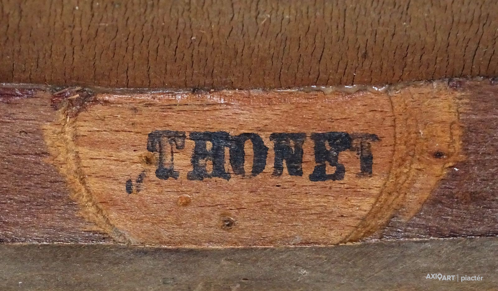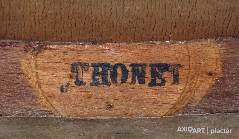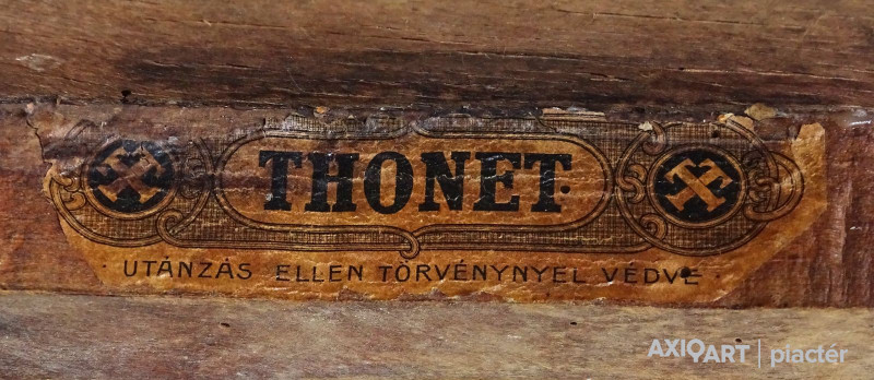 Jelzett, antik, 1900 évek elejéről származó jelzett Thonet, rendkívül dekoratív, díszes szecessziós mintázatú 6 darab egyforma szék, eredeti állapotú darabok. A székek kétszer jelzettek, papírvignettával és sütött jelzéssel:
