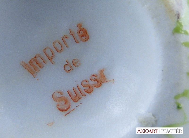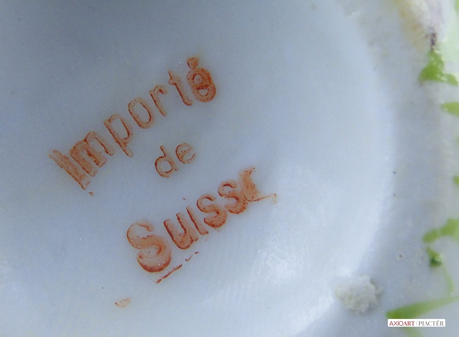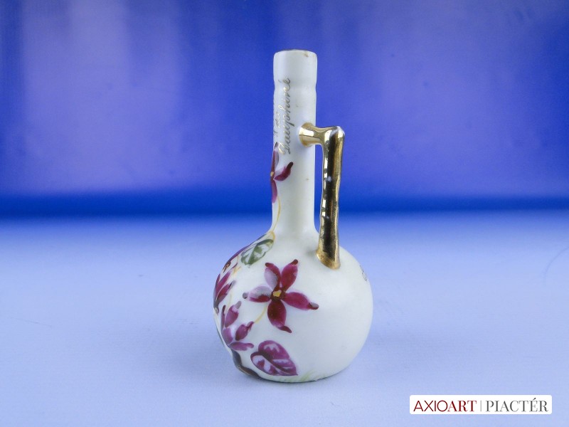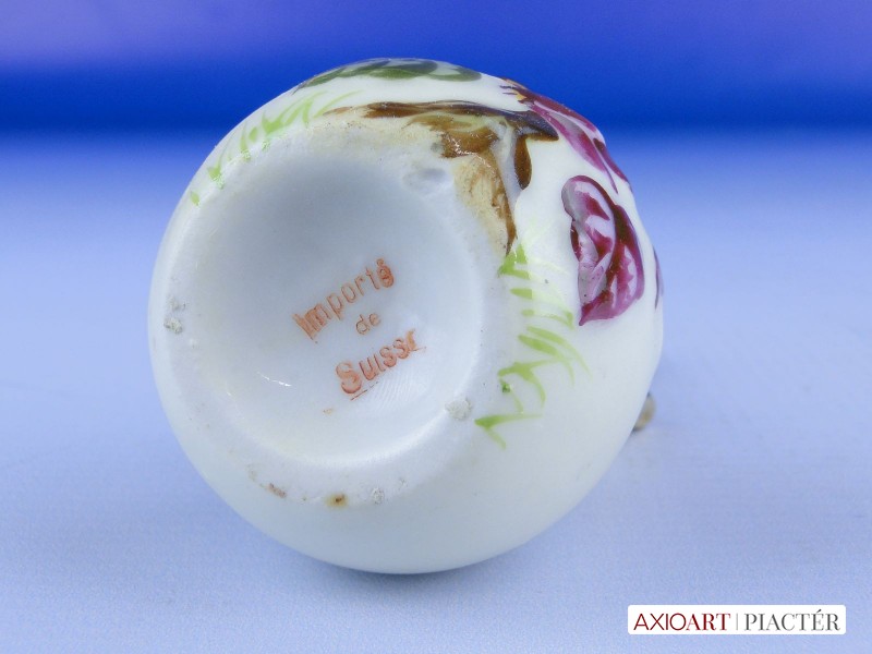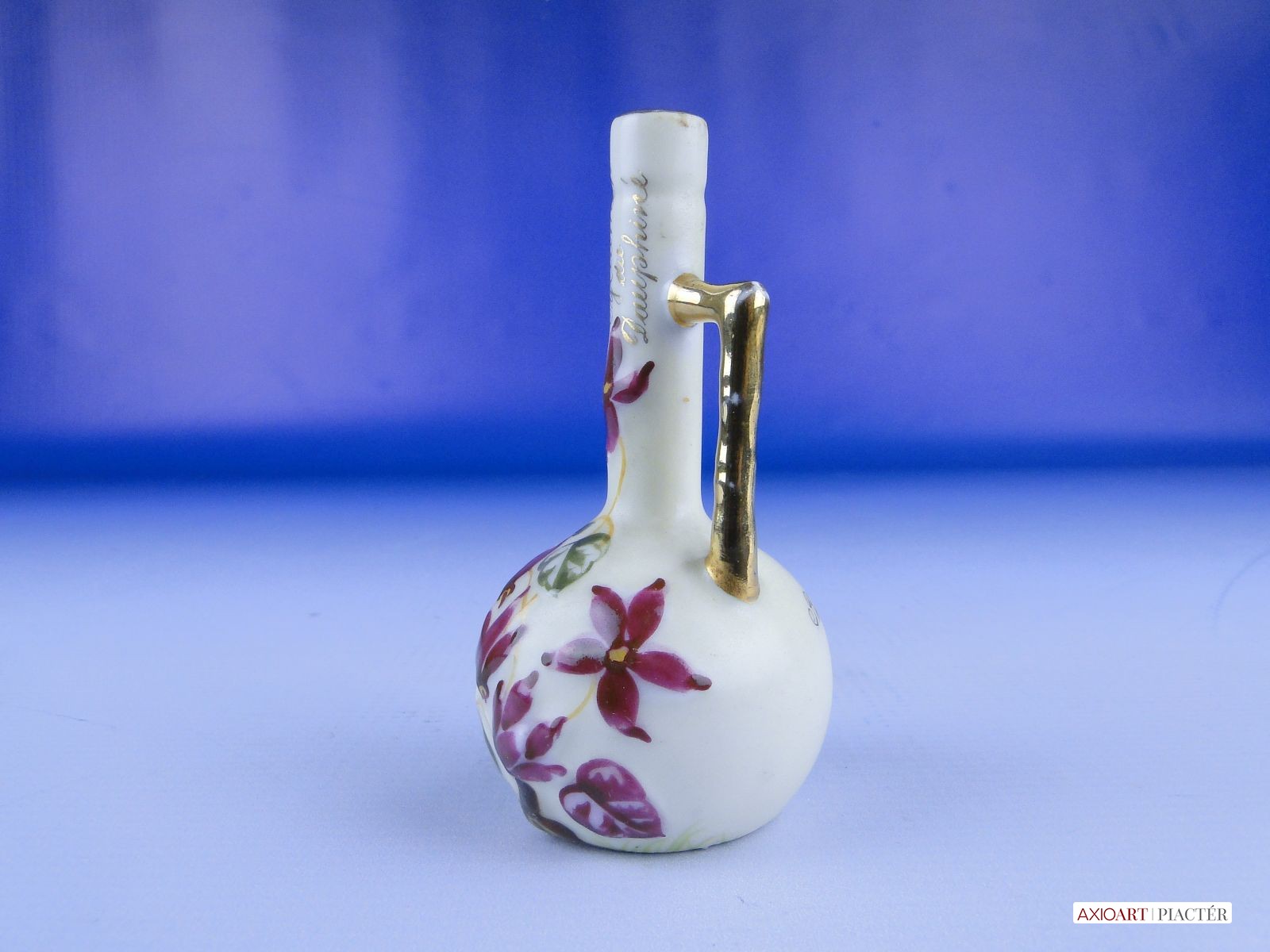 Antik, hibátlan állapotú, jelzett, svájci porcelán váza, díszváza, ibolyaváza.