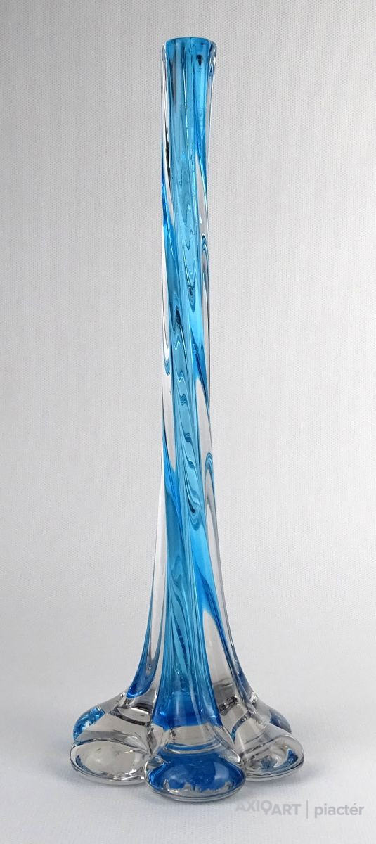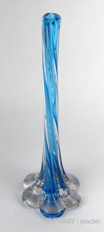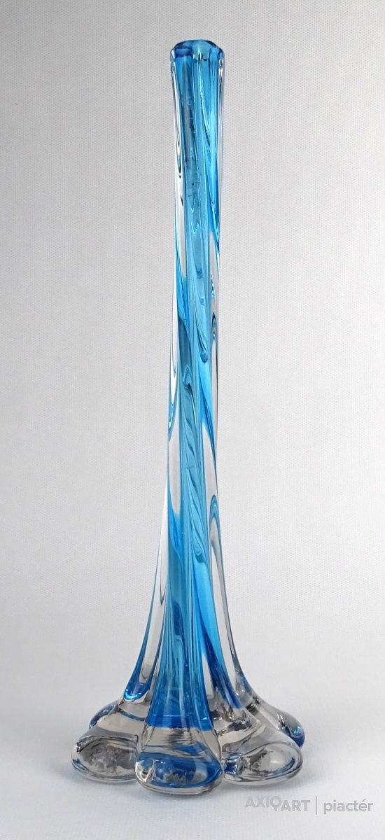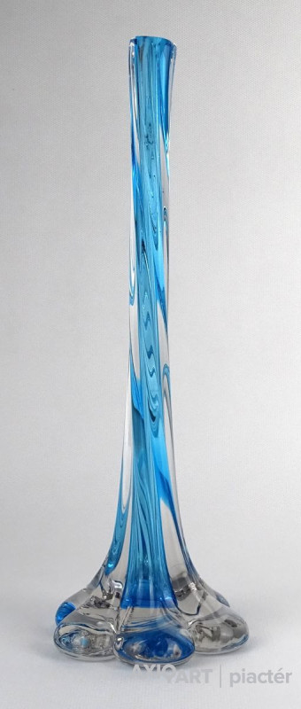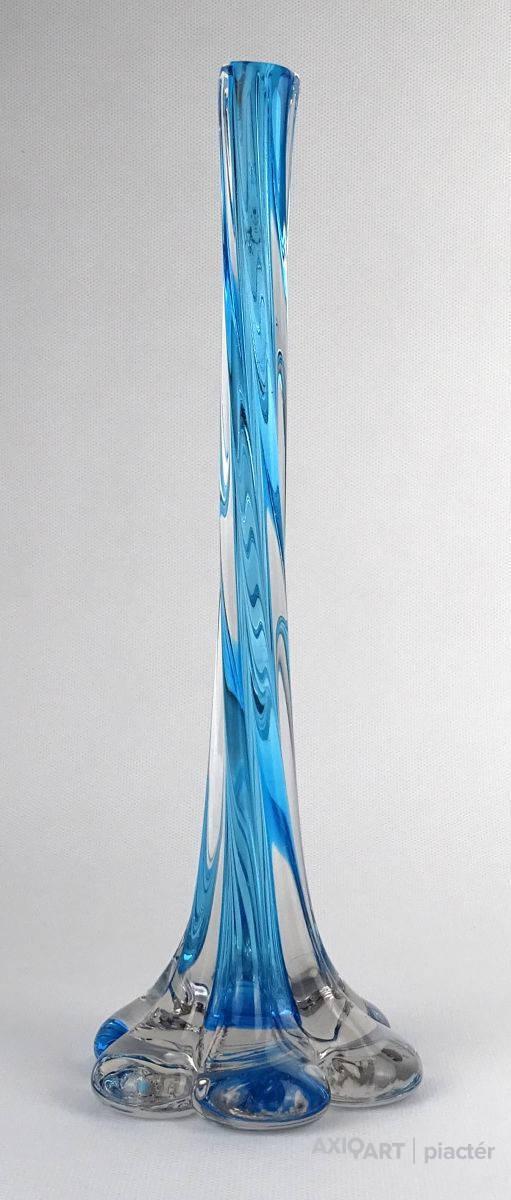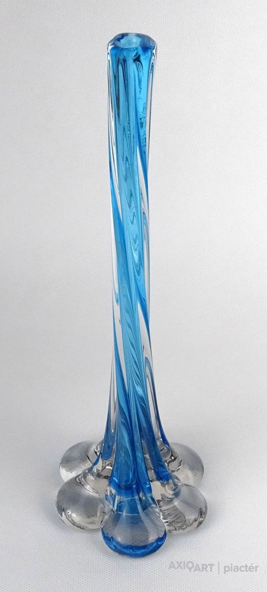 Hibátlan állapotú, csavart testű gyönyörű fúvott színezett Moser üveg váza, szálváza, egy szál virág számára.