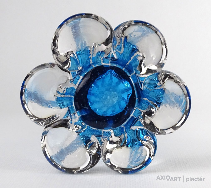 [1O212/Z046] Hibátlan állapotú, színezett fúvott üveg váza, talpas üveg váza vagy üveg kupa. Skandináv design üveg. Talpán a fúvás szakítás nyoma szépen kivehető. Magasság: 14 cm Szélesség: 6.5 cm Súly: 0.215 kg Erik Höglund  Ugrás a navigációhozUgrás a kereséshez A papról (1902–1971) lásd Erik Höglund (pap) . Erik Höglund Született 1932. január 31. Karlskrona , Blekinge megye Halál 1998. január 27. (65 éves) Maria Magdalena plébánia , Stockholm Állampolgárság svéd Foglalkozás/megbízás Tervező, művész Ismert Tervezés Koszta Boda számára Feleség Maerit Levin (sz. 1953–1967; elvált) Ingrid Höglund (sz. 1974–1998; halála) Partner Monica Backström (partner 1968-1972) Rokonok Anna Höglund (lánya) Erika Höglund (lánya) Albin Höglund (fia)  Erik Sylvester Höglund , 1932. január 31-én született Karlskronában , 1998. január 27-én halt meg a stockholmi Maria Magdalena plébánián , svéd szobrász , festő , grafikus és üvegművész . Életrajz  Erik Höglund Torsten Höglund és Jenny Jonsson könyvelő fia, valamint Tore Enar Höglund szobrász és grafikus öccse volt . Tanulmányait a stockholmi Konstfackban végezte , először dekorfestészetet Fritz Sjöströmnek , majd szobrászatot Robert Nilssonnak , végül 1951–1952-ben Harald Sallbergnek grafikát . Erik Rosén , a Boda Üveggyár 1953 és 1973 között dolgozó tervezője fogadta be , és ez idő alatt jött el, hogy átalakítsa a svéd műüveggyártást az üvegtermékek kinézetére vonatkozó új ötletek bevezetésével. Ösztöndíja többek között metszetekkel kapcsolatban, a színek és a földes, aszimmetrikus dizájn sikeres lett a külpiacon. Bodán töltött ideje alatt fenyővel, vasalással és bútorokkal is foglalkozott. Később más üveggyárakkal is együttműködött, például a Pukeberggel , a Lindshammarral és a Studioglas Strömbergshyttannal . 1968-ban Monica Backström üvegművésszel megalapította a Backström & Höglund Design AB formatervező céget, amely bútorok, háztartási eszközök és használati tárgyak tervezésével foglalkozik. Höglund tagja volt a Vet Hut AB-nek is, amelyet 1971-ben alapított a Boda glasbruk tíz tervezője szokásos munkájuk mellett: Erik Höglund, Monica Backström, Ann Wolff , Göran Wärff , Bertil Vallien , Ulrica Hydman-Vallien , Per Arne. Lundahl, Liselotte Jörgensdotter, Gunhild Sinnemark és Rolf Sinnemark . Erik Höglund szobrászként számos köztéri dekorációt készített különféle anyagokból, köztük téglából és betonból. Ezt követően gyakran dolgozott együtt olyan építészekkel, mint Jon Höjer a Höjer & Ljungqvistnél , Bengt Gate és Lars Ågren .  Kiállítás  A stockholmi Palmcrantzska gyárban korábban Ulf G. Lindén állandó kiállítása volt Erik Höglund alkotásaival. Ezt a gyűjteményt 2009 szeptemberében a karlskronai Blekinge Múzeumnak adományozták.  Közművek válogatásban  Két állat és egy játék (1966), gránit, Bredängs Torg Stockholmban. Fiskargumman a karlskronai halpiacon. Négyzet alakú oszlop Gävle-ben Erik Höglund mintegy 150 köztéri dekorációt készített üvegből, bronzból, kovácsolásból, téglából, gránitból és betonból. Kerékpárosok I (1956), bronz, a trelleborgi oktatási intézmény Kerékpárosok II (1957), bronz, a karlskogai oktatási intézmény Kerékpárosok III (1957), bronz, stockholmi Hökarängens iskola Az élő szó (1958), festmény a nybrói városi könyvtárban Kerékpárosok IV (1958), bronz, Handverkstorget Sandvikenben Kerékpárosok V (1959), Sjöboskolan, Borås Falfestmény üvegablak (1962) a borgholmi templomban Kristallglasskogen (1964), üvegmozaik fal, Ellagårdsskolan Täby községben A tudás fája (1966), vasműves és üveg, Folkets Hus Nybroban Állatszobrok (1964-67), gránit, Hallsberg Két állat és egy játék (1966), gránit, Bredängs torg Stockholmban Tó szökőkúttal (1967), gránit, Trelleborg Ülő terhes nő (1971), bronz, Haganässkolan Älmhultban Hajó halászokkal (1972), vas, üveg és fa, Hotel Witt Kalmarban Négyzet alakú oszlop (1971-74), beton, Stortorget Gävle -ben A súlyemelő (1974), bronz, az östersundi sportcsarnok Gyűrűk a vízen (1976-77), bronz, Rödeby Torg , Karlskrona önkormányzat Az élet játéka , tégladomborműves fal és régi érmék , üveg, mindkettő 1979–1980, Sparbanken Linköpingben Úszók (1980), kovácsoltvas, úszócsarnok Rödebyben , Karlskrona önkormányzat Cirkuszgömb (1980-81), kovácsoltvas, Kristianstad megyei tanács Fiskargumman (1981-82), bronz, halpiac Karlskronában Az olvasócsalád (1983), bronz és üveg, Kalmár Városi Könyvtár Életmentő (1985), réz, úszócsarnok Haganässkolanban Älmhultban Dans bort i vägen (1985), bronz, Torsås volt Anya és gyermeke , bronz, Trelleborg A büszke apa és Két ember , bronz, Eskadern lakónegyed Linköpingben Játssz szobrot téglából, Lönneberga óvoda, Norra Fäladen Lundban  Forrás: wikipédia