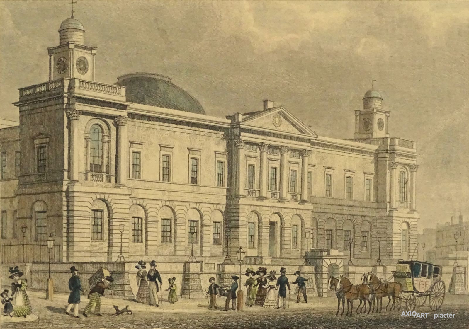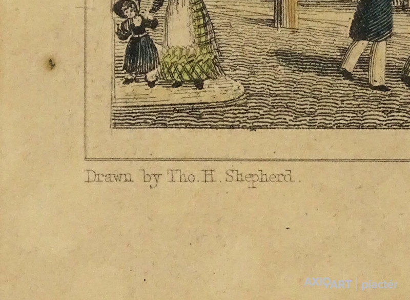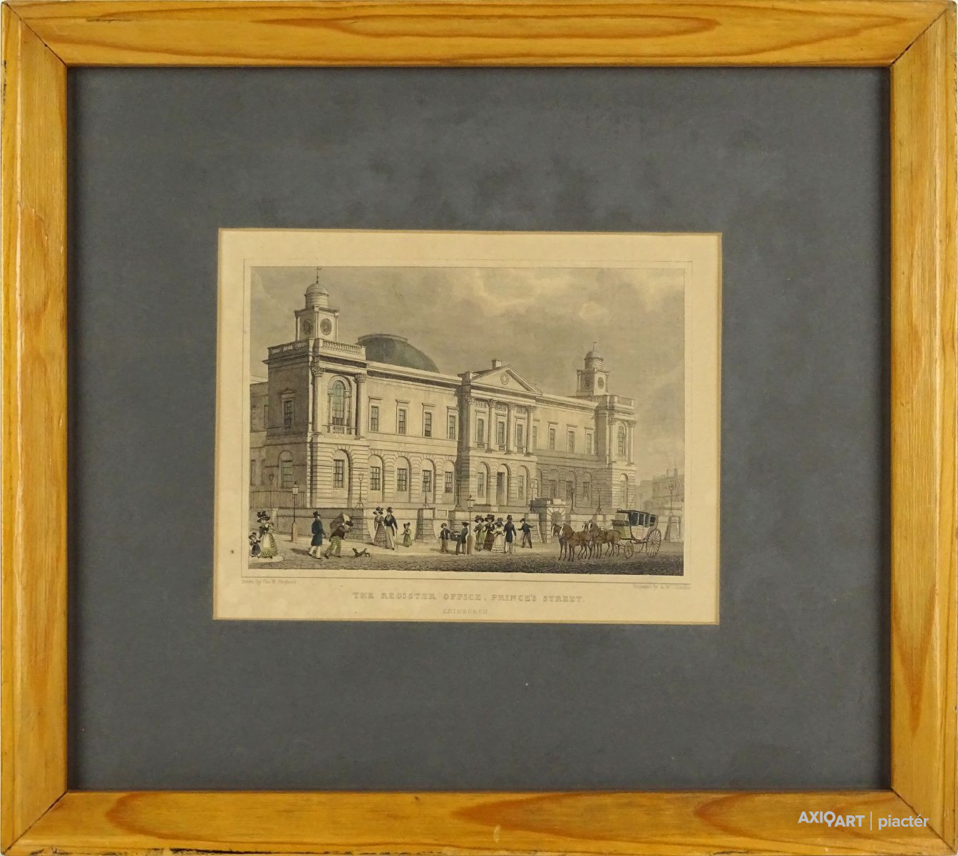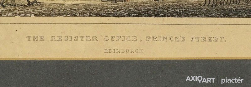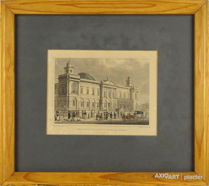 [1D996/W024] Nagyon régi színezett acélmetszet az 1800-as évek elejéről. Üveglap mögött, paszpartuban, fenyő keretben, falra akasztási lehetőséggel. Azonnal falra akasztható, ajándékozható állapotban. Feliratok: DRAWN BY THO. H. SHEPHERD ENGRAVED BY A. MC. CLATCHIE THE REGISTER OFFICE, PRINCE'S STREET EDINBURGH Magasság: 25 cm Szélesség: 29.5 cm Súly: 0.59 kg