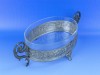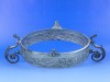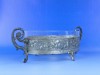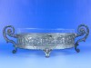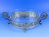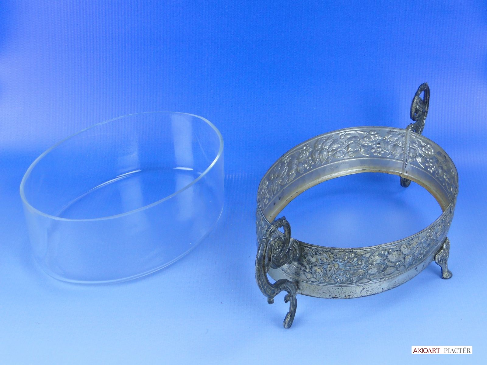 [0D365/BX-6] Ovális alakú, szőlőlevél, szőlőfürt mintákkal díszített szecessziós lábakon álló üvegbetétes asztalközép kínáló, gyümölcskínáló. Szélesség: 14.5 cm Hosszúság: 27 cm Súly: 0.478 kg