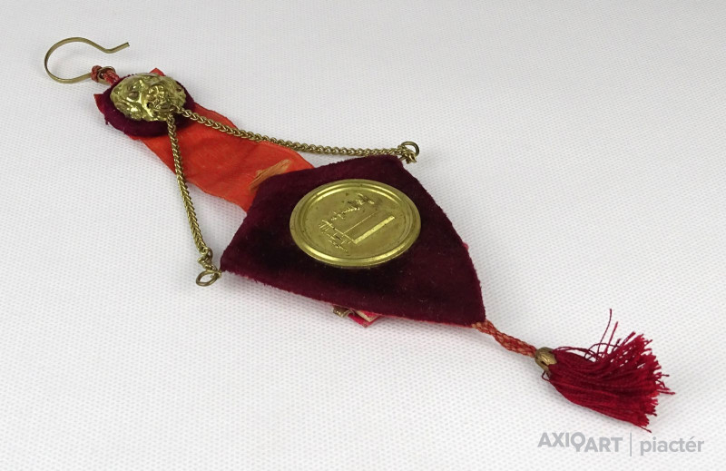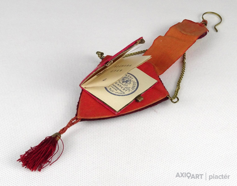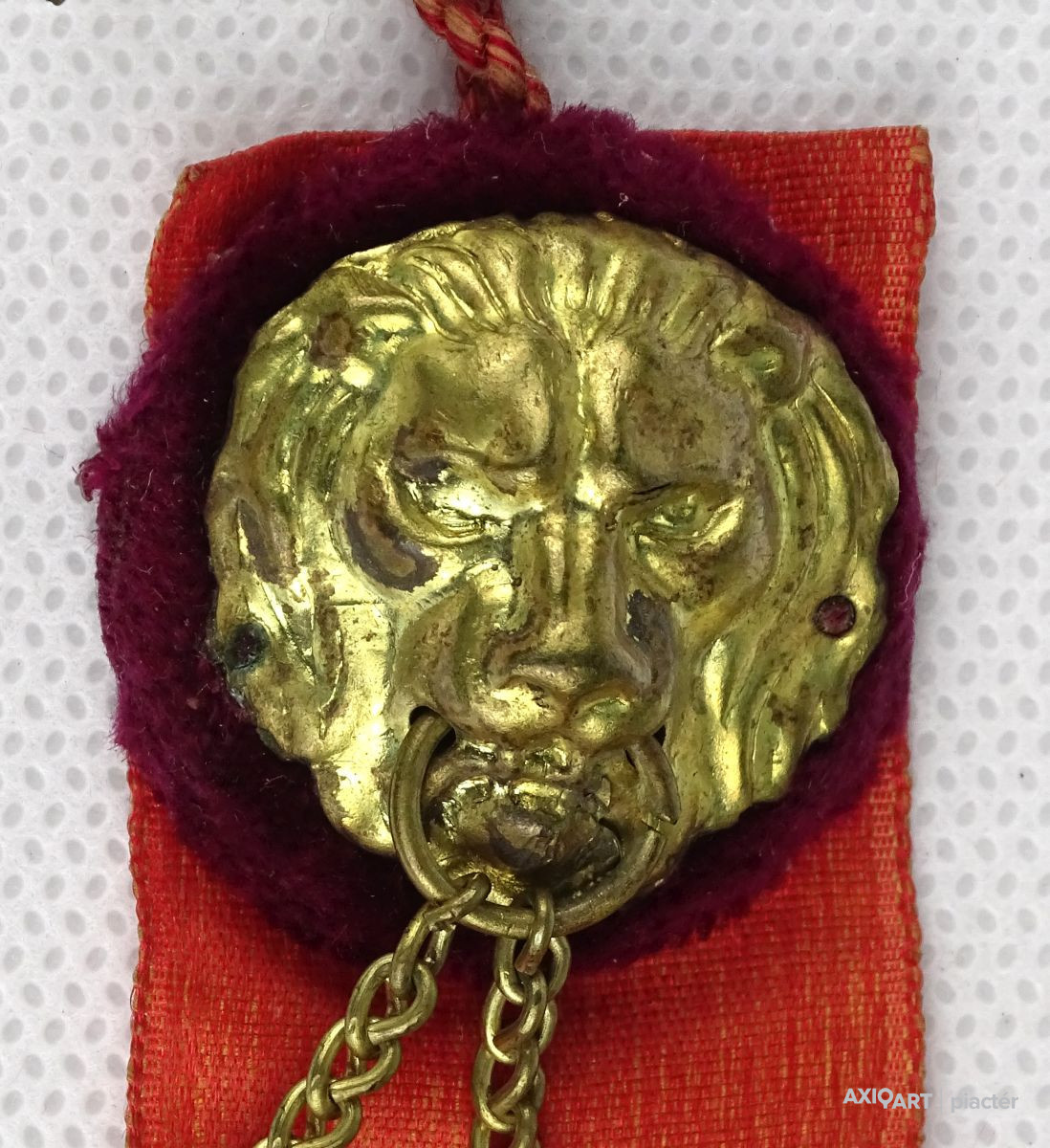 [1N841/FSZ] Régi, különleges, akasztóval rendelkező réz oroszlán fejjel és lánccal díszített táncrend füzet, fotón látható állapotban. Feliratok: TÁNCZREND A VAS ÉS FÉM ESZTERGÁLYOSOK BÁLJÁN 1894 FEBRUÁR 24 A TÁNCRENDEZÉST PACHER KÁROLY ÚR VOLT SZÍVES ELVÁLLALNI BORZENSKI JÓZSEF KÖNYVKÖTŐ BUDAPEST Magasság: 25 cm Szélesség: 9 cm Súly: 0.025 kg