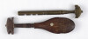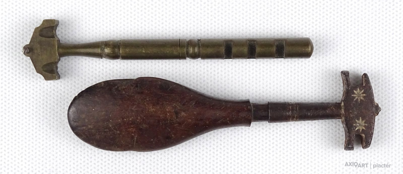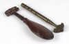 [1R705/X109] Szép állapotú antik üvegvágó szerszám. Az egyik gyöngyházberakásos fa nyéllel rendelkezik, a másik rézből készült. Súly: 0.075 kg