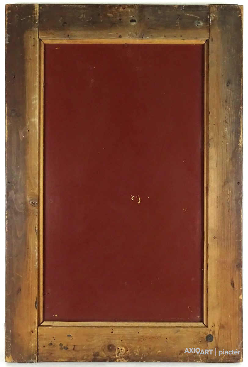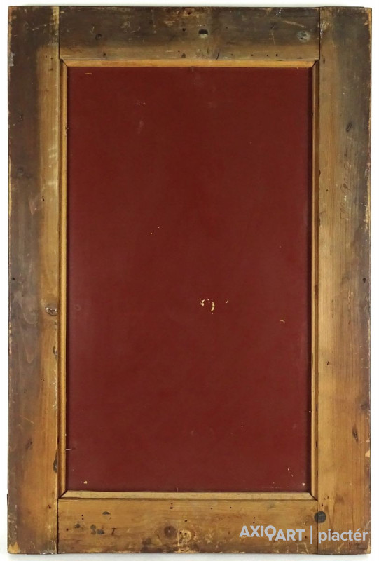 [1Y029/Z018] Olaj farost festmény, üveglap mögött, hibátlan képcsarnokos keretben. Hátoldalán Képcsarnok Vállalat papír címkéje: A művész neve: SCHÉNER MIHÁLY A kép címe: TÁJ Magasság: 66.5 cm Szélesség: 86 cm Súly: 6.54 kg Schéner Mihály festő, grafikus, szobrász, keramikus, bábtervező Medgyesegyháza, 1923-01-9 Elhalálozott: Budapest, 2009. május 11. Honlap: http://www.kormendigaleria.hu/kiadvany.html 1942-1947: Magyar Képzőművészeti Főiskola, tanára: Rudnay Gyula. 1978: Munkácsy-díj; 1984: érdemes művész; 1989: kiváló művész; 1995: Kossuth-díj. 1992-től a Magyar Művészeti Akadémia, 1993-tól a Széchenyi Irodalmi és Művészeti Akadémia tagja. 1956-ig tanított. 1982: Nagyatádi Faszobrász Alkotótelep, 1985: Nemzetközi Acélszobrász Alkotótelep, Dunaújváros. A stílusában felismerhető, mégis sokféle műtárgyat létrehozó ~ gazdag, állandóan alakuló életműve a folyton változó világban helyét kereső, az alkotói szabadságot megvalósító XX. századi képzőművész példázata lehetne. Magát expresszív-szürrealista alkotónak nevezi. Egyaránt dolgozik festékkel, textillel, fával, fémmel. Rajzol, szerkeszt, farag, épít, gyúr, varr és ragaszt, felhasználja a mézesbábok öntőformáit. Festő, rajzoló, textilszobor- és bábkészítő, fazekas, asztalos, esztergályos. Háromlépcsős folyamatban gondolkozik: rajzban tervez, majd fest, szobrot készít, “formába önt”, mindig a végső plasztikai megoldást keresi. Ami állandó és mégis játékosan változékony megjelenésű Schéner művészetében, az a gyermekkori emlékek által meghatározott népi mesterségek iránti tiszteletet kifejező motívumkincs, a tárgyi folklór formakészlete, amely már-már kézjegyként ismétlődik munkáin. Mitologikussá nőtt képzelete új lényeket teremt, pl: a Pigulát, amely disznótestű, emberfejű teremtmény. Schéner festményein a szürrealista motívumokat konstruktív szerkezetbe rendezi, a geometriát és az organikus természeti motívumokat egyaránt beépíti műveibe. A népi, népművészeti formakincsből merített lovas huszárok, betyárok, szegénylegények cifra szűr mentéje, piros csákója, fekete csizmája, az önálló életet élő zsinórdíszek és mézeskalács bábok, a kiskocsik a gyermekkori vásárok, búcsúk színes forgatagába vezet. A primér motívumokat aztán felváltják a vastagon felhordott felületbe karcolt jelek, vonalhálózatok, amelyek a játszó gyermek homokba rajzolt ábráit, a pásztorember fába vésett üzeneteit, az ősember barlang falába rótt mágikus jeleneteit idézik meg. A művész pillanatnyi érdeklődésének megfelelően a színek búvópatakként tűnnek el és jelennek meg ismét. A 60-as években leginkább a formákkal való játék érdekelte, a festmények felülete egyre gazdagodott: a táblaképek felületén applikációk jelentek meg, vagy lemállasztott rétegek hagyták maguk után hiányukat, motívumok nélküli ősformák, archetipikus képzetek bukkantak fel művészetében. A véletlenszerűnek látszó rétegekkel való játék azonban tudatos komponálás eredménye, amely később nyilvánvaló ritmusnak és formai szerkesztettségnek adja át a helyét, mint a Törvénytáblák c. sorozaton. A különböző művészi kifejezési formák egymásra termékenyítő hatással vannak, át- meg áthatják egymást. Textilszobrai, amelyekkel új műfajt teremtett, ugyanazzal az automatikus, expresszív-szürrealista módszerrel készülnek, mint festményei. A hagyományosan a népművészetben alkalmazott anyag, a filc lehetőséget ad a népi formakincs felelevenítésére, amely azonban a művész különös szürrealista átiratában jelenik meg. A szívekkel kivarrt, zsinórdíszes Posztókotlós c. művén mézesbábok lógnak, hátán huszárok lovagolnak. Egész sor textilből készült kéz-plasztikát alkot, amelyeket az ujjakra rávarrt díszekkel öltöztet, személyesít meg. A színes-különös világból aztán ~ újra puritán képi és formai rendbe juttatja el a nézőt, majd nemsokára tépett, gyűrt, vágott, csorgatott, repedezni hagyott szenvedélyesen vonagló képi felületeket hagy hátra. Schéner készített apró gyermekjátékokat, térstruktúra-tereket, mászókákat is. A magyar népi formák mellett szürreális játékaiban gyakran alkalmaz görög mitológiai alakokat, “elkentaurosodott” lovakat, Gorgó-fejeket, sellőket, hárpiákat, Pán-ábrázolásokat. Schéner nemcsak saját művészetéről publikál, hanem művésztársairól is számos írása jelenik meg, elsősorban az Új Auróra c. folyóiratban, amelynek egy ideig főmunkatársa volt. Irodalom kiállítása, Magyar Építőművészet, 1962/4. Húsz év után, Művészet, 1965/4. BOZÓKY M.: ~, Tiszatáj, 1968/5. PERNECZKY G.: Nincs uborkaszezon, Élet és Irodalom, 1969. augusztus 8. BARÁNSZKY-JÓB L.: ~, Művészet, 1969/9. LÁSZLÓ GY.: ~ kaposvári kiállítása, Jelenkor, 1969/4. MAJOR M.: Pásztorok, betyárok, huszárok - kezek, Tükör, 1970. szeptember 15. FRANK J.: Bemutatjuk ~t, Élet és Irodalom, 1972. május 6. ról kiállítása ürügyén, Képzőművészeti Almanach, Budapest, 1972 Sötétkék kokasok, Élet és Irodalom, 1973. szeptember 9. MAJOR M.: ~ játékai, Élet és Irodalom, 1974. július 27. BARTA J.: Egy különös művész, Alföld, 1974/6. VADAS J.: Szárnykészítők, Élet és Irodalom, 1975. október 4. JUHÁSZ F.: A halál ellen játszani, Élet és Irodalom, 1975. május 17. PAP G.: Kincsek és műkincsek, Művészet, 1975/6. P. SZŰCS J.: Az utak kettéválnak, Művészet, 1978/3. Békési művészet, Művészet, 1978/7. SZAMOSI F.: ~ [kismonográfia], Budapest, 1978 VADAS J.: Játék a játékkal, Élet és Irodalom, 1979. augusztus 18. NÉMETH L.: ~ műveiről, Művészet, 1979/4. MIKLÓS P.: Mit akar ez a múzeum?, Művésze