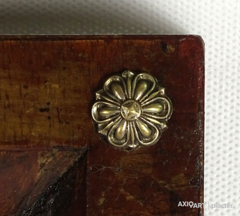 [1L155/121] Szép állapotú, eredeti, felújítás mentes, vastag svartnis biedermeier szobatükör. Benne metszett, fazettázott vakfoltmentes tükör. Sarkainál szép fém veret díszítések láthatók. Magasság: 80 cm Szélesség: 53.5 cm Súly: 4.05 kg