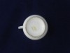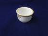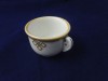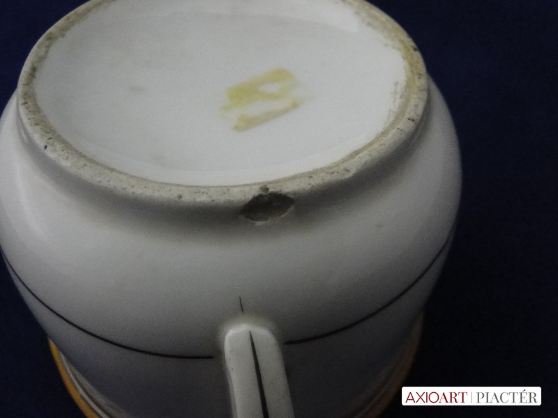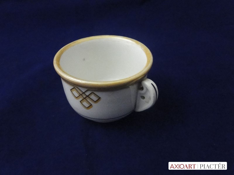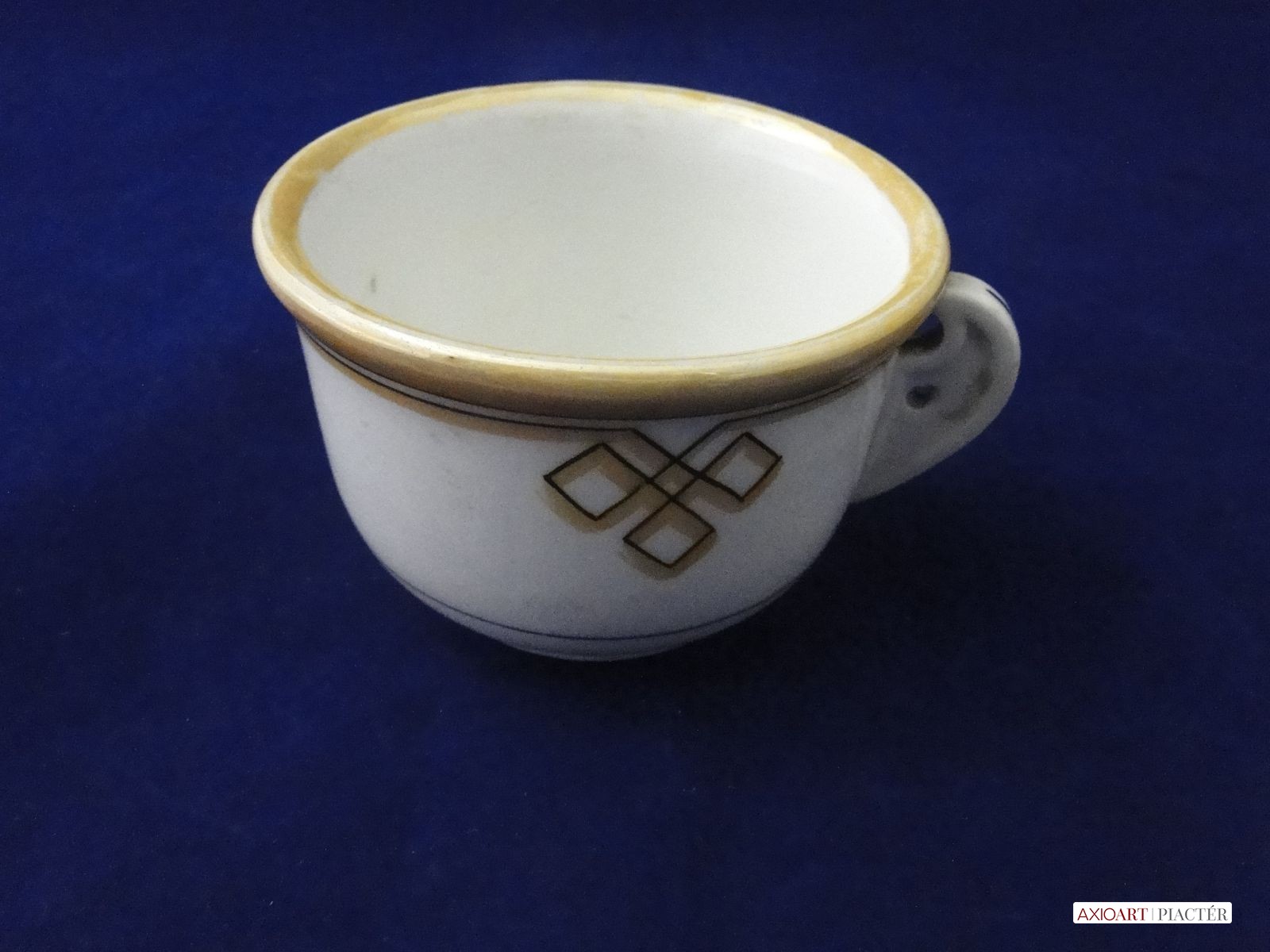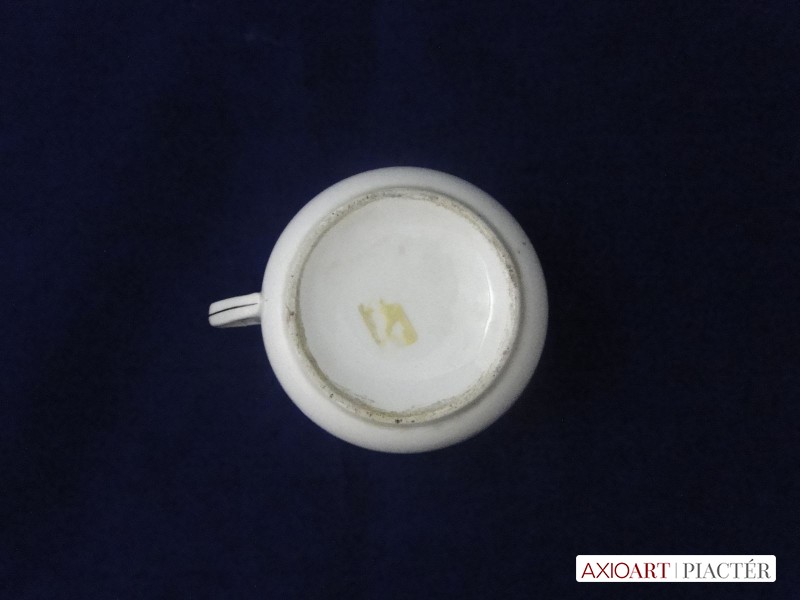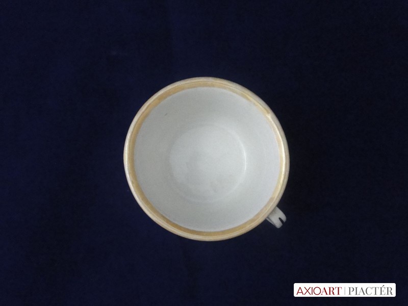 Antik szép állapotú vastagfalú porcelán koma csésze koma tál, oldalán körben elegáns irizáló kézi festésű díszítés.