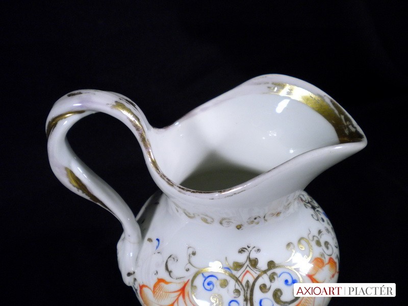 1880 körüli vastagfalú dúsan aranyozott porcelán kiöntő, tejszínes vagy tejes kiöntő .