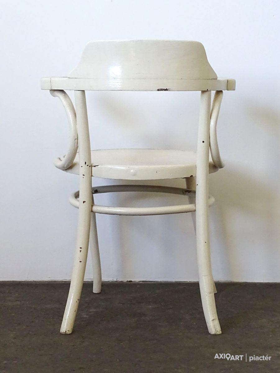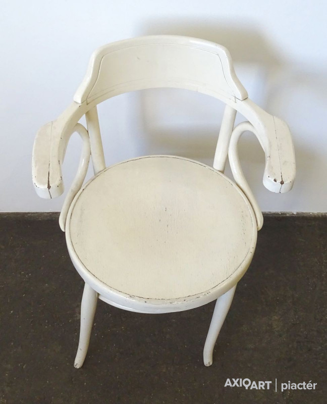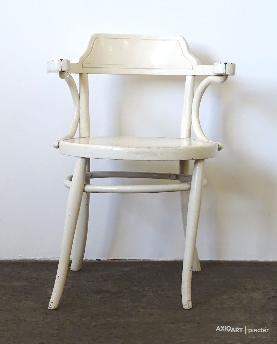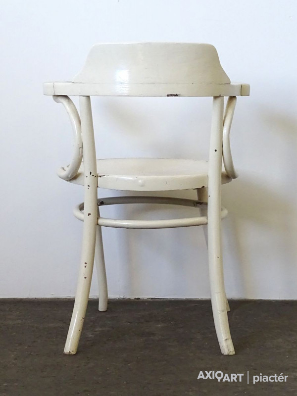 Antik, fehérre festett, vintage, támlás karfás Thonet szék. A lábai megerősítésre szorulnak.