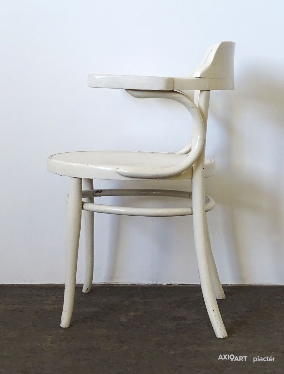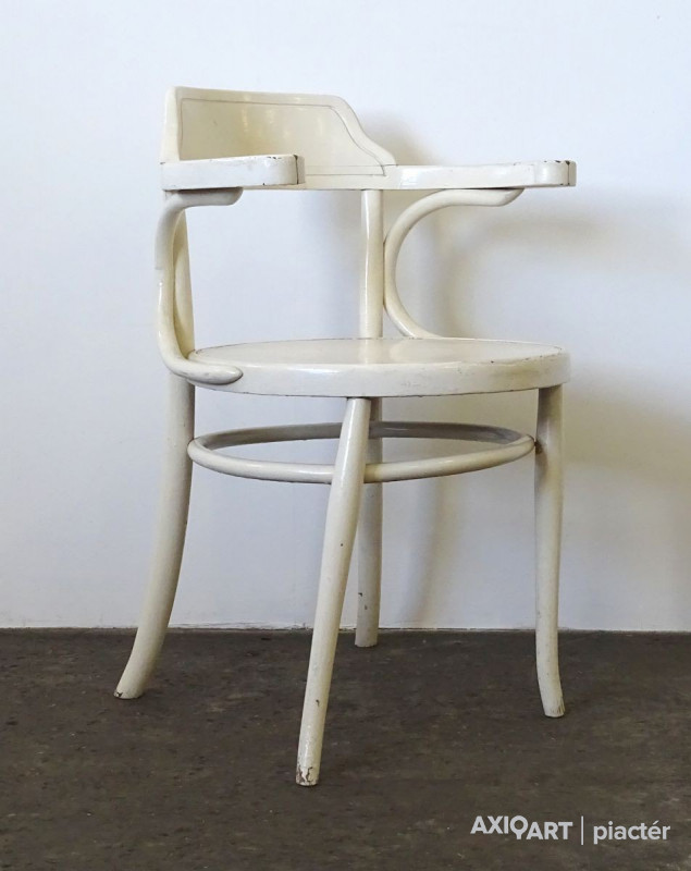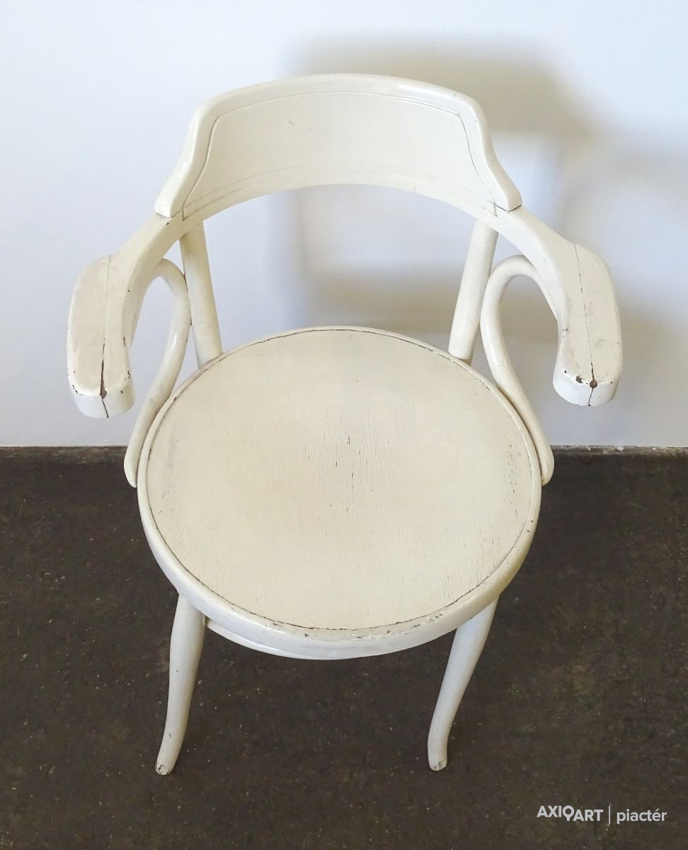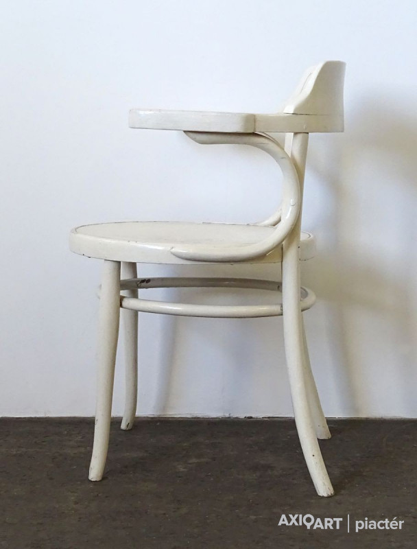 Antik, fehérre festett, vintage, támlás karfás Thonet szék. A lábai megerősítésre szorulnak.