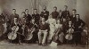 [0U763/X319] Antik, kartonra ragasztott, fekete-fehér fotográfia, melyen egy 16 fős zenekar látható. A kép a század forduló környékén készülhetett. Magasság: 33 cm Szélesség: 50 cm Súly: 0.165 kg