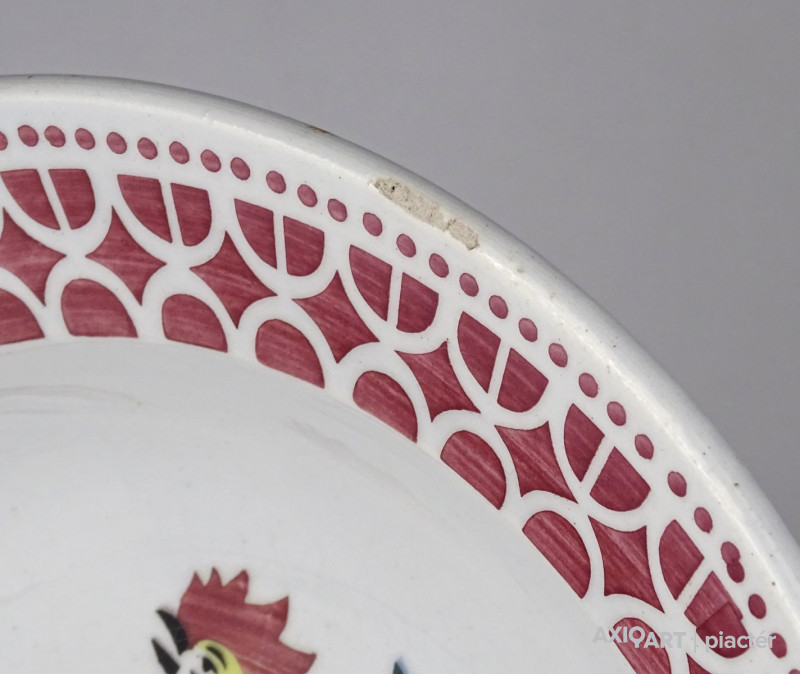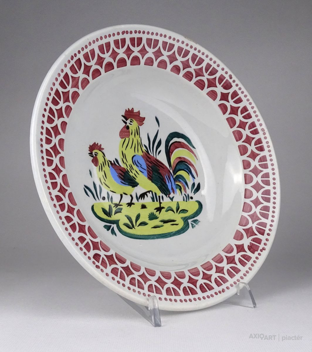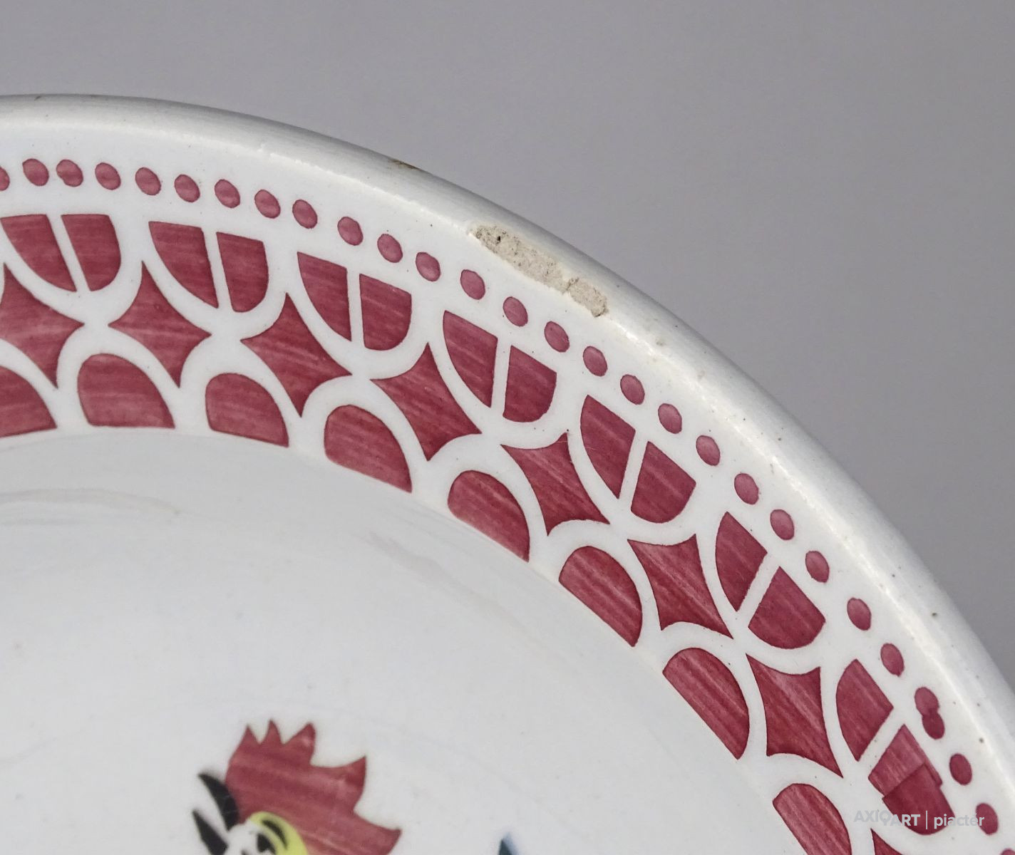 Antik, hibátlan állapotú kakasos, jelzett porcelán falitányér, dísztányér az 1900-as évek első feléből. Akasztási lehetőséggel rendelkezik.