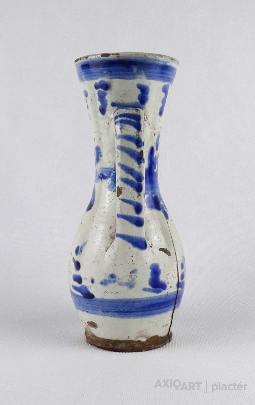 [1V536/X318/2] Antik, szép állapotban megmaradt, a XIX. század elején készült erdélyi néprajzi fazekas munka, székelyudvarhelyi bokály. A teste repedt, javított. Magasság: 22.6 cm Szélesség: 9.5 cm Hosszúság: 11.5 cm Súly: 0.645 kg