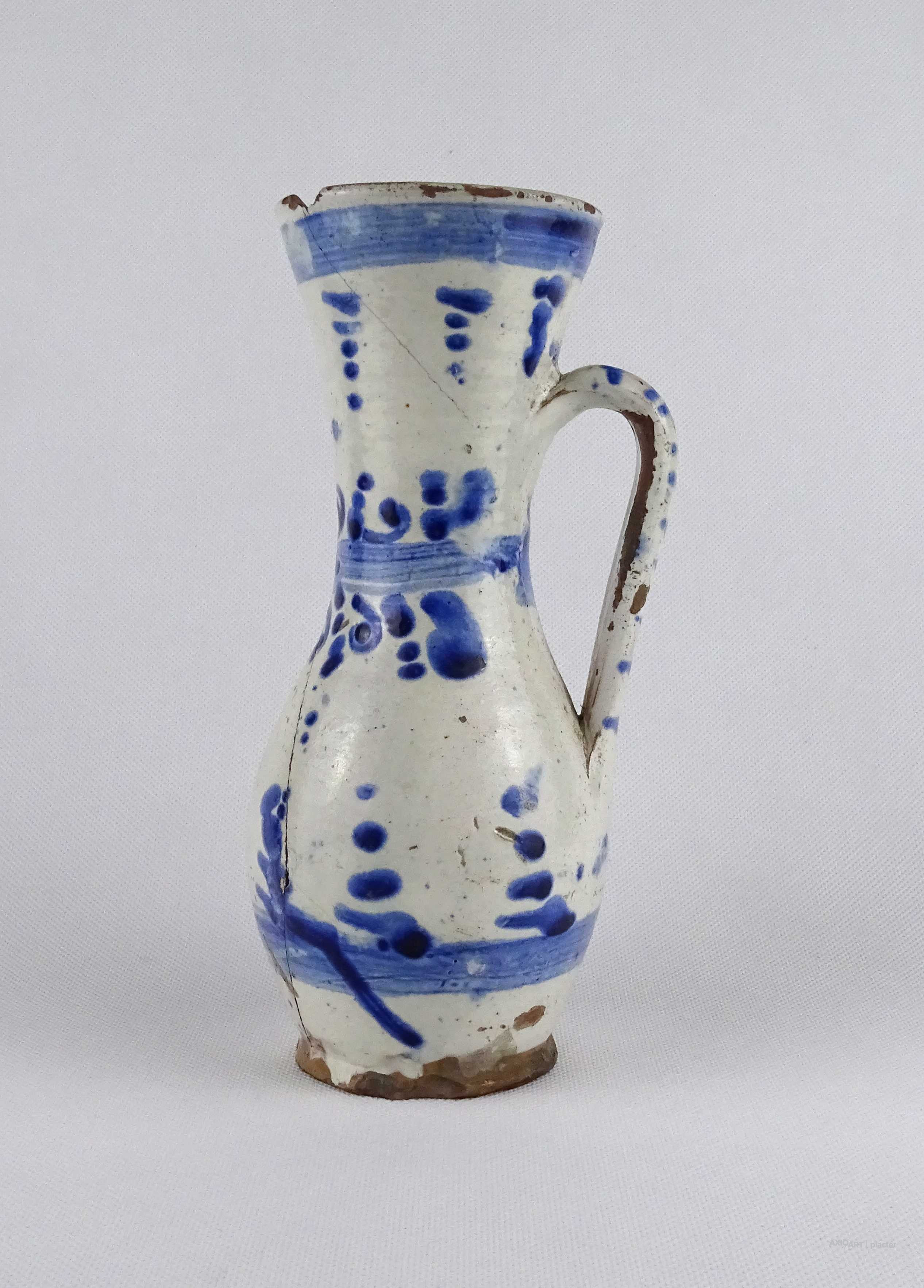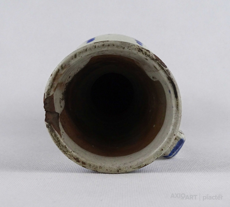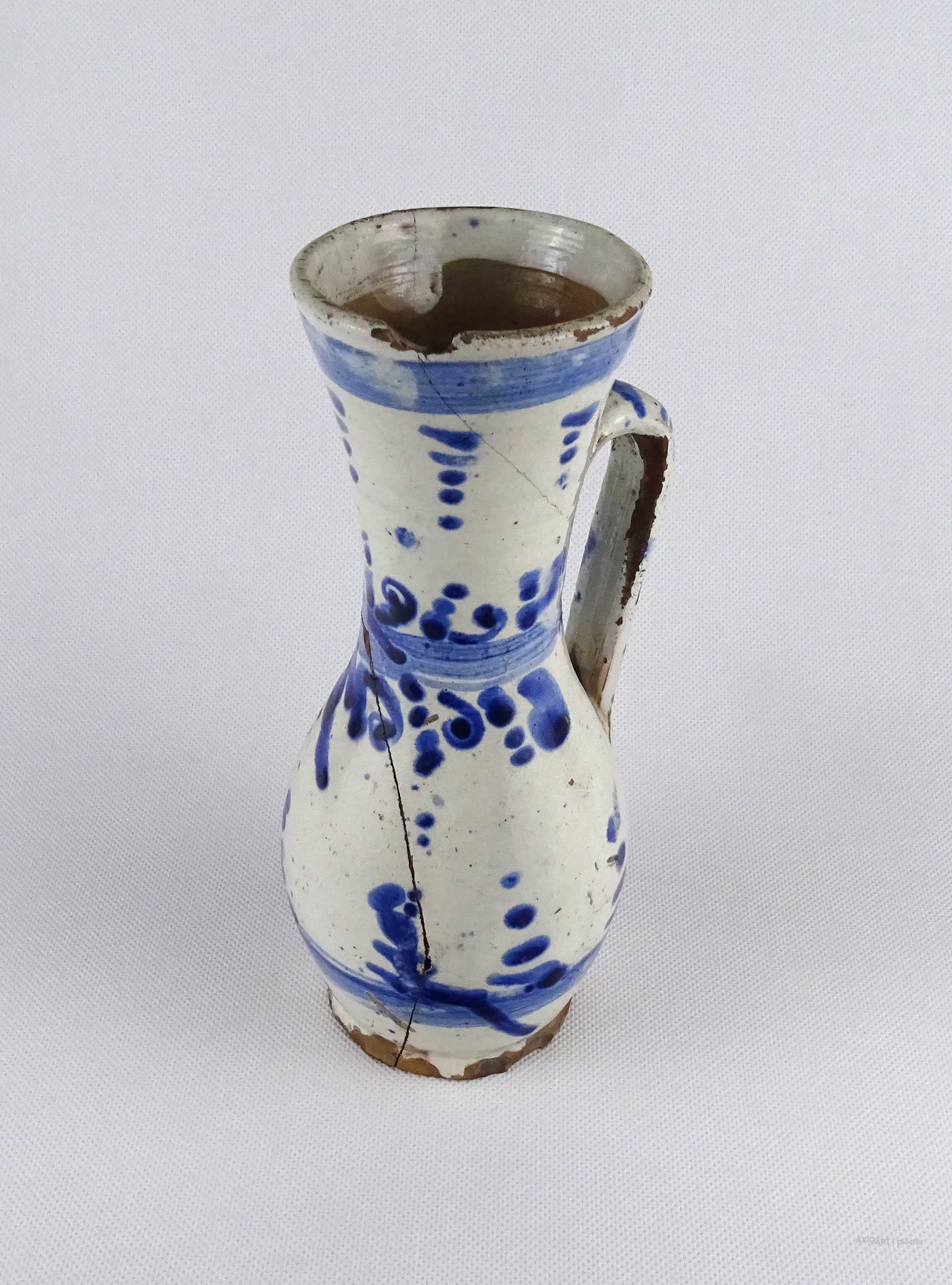 Antik, szép állapotban megmaradt, a XIX. század elején készült erdélyi néprajzi fazekas munka, székelyudvarhelyi bokály. A teste repedt, javított.