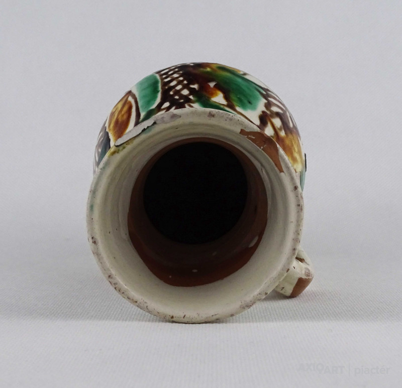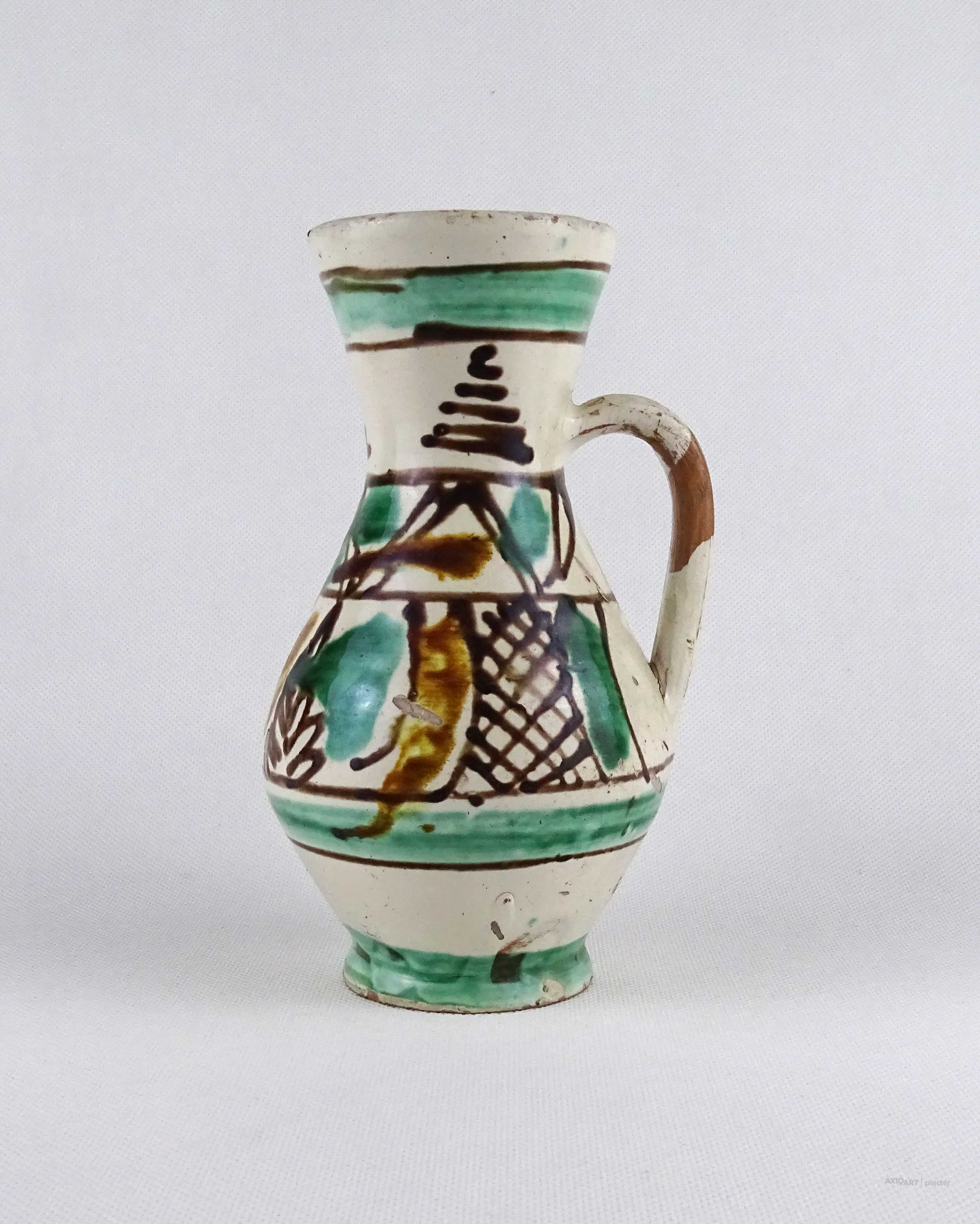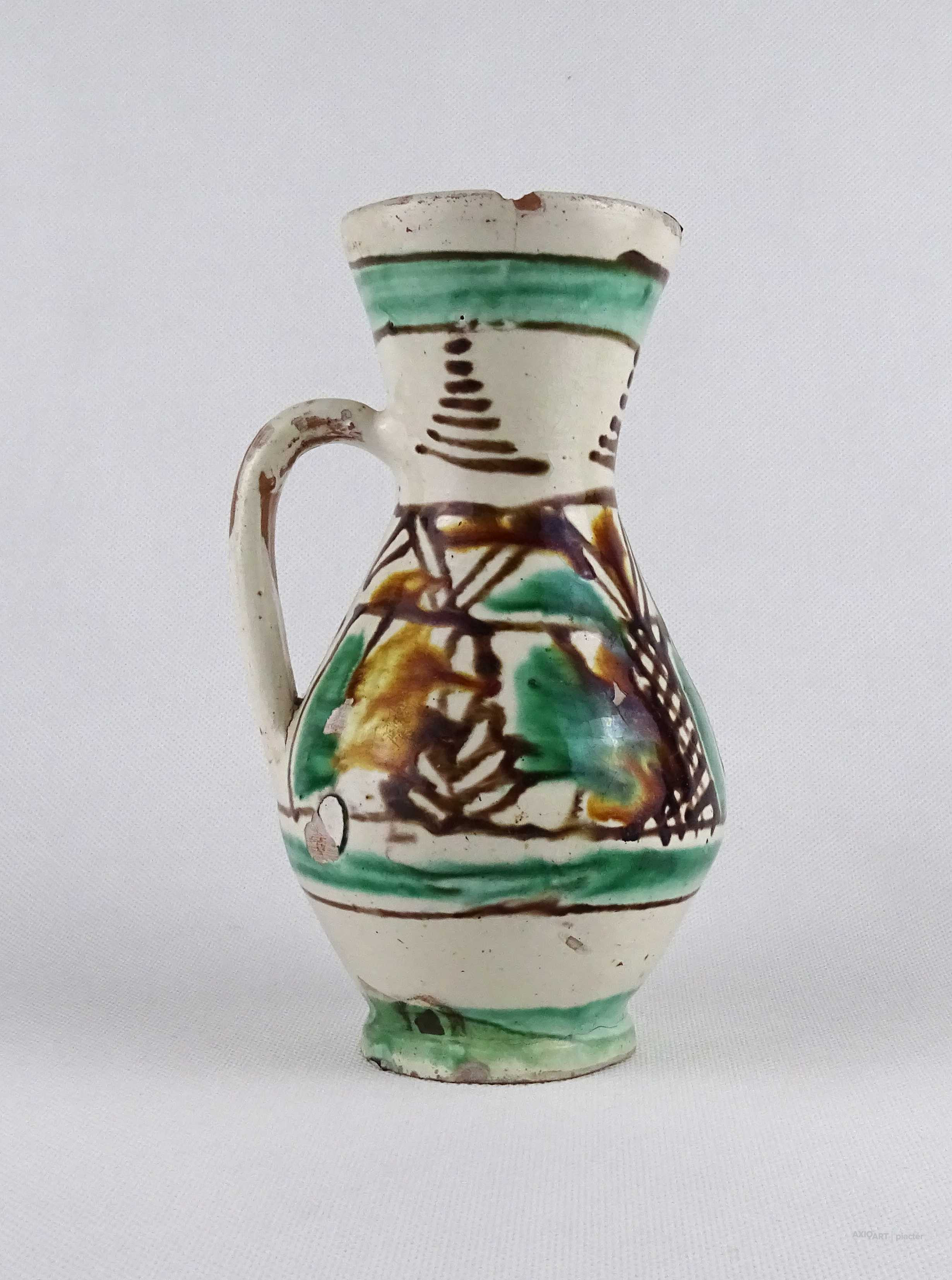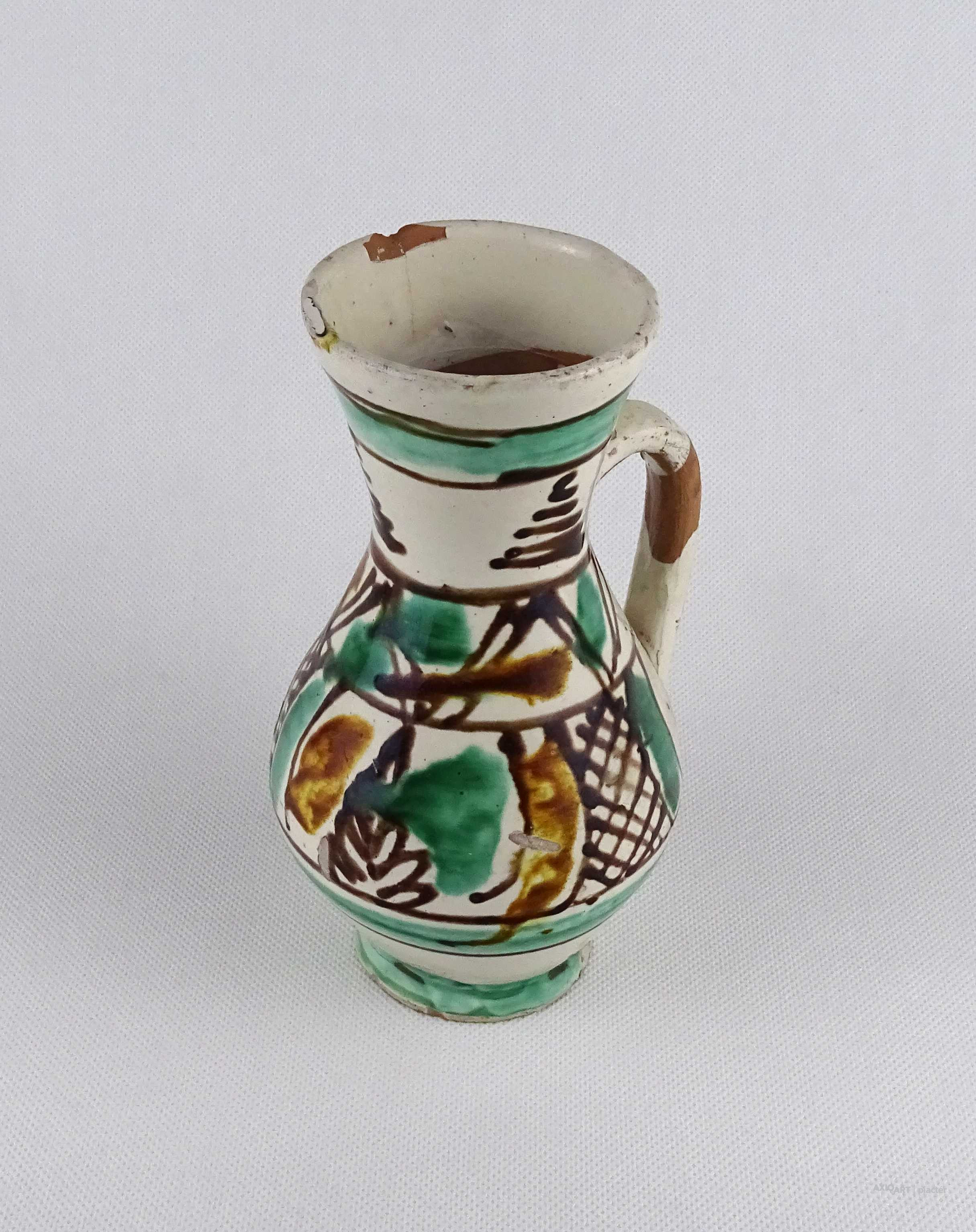 [1V540/X318/2] Antik, szép állapotban megmaradt, a XIX. századi erdélyi, néprajzi fazekas munka, makfalvai bokály. Magasság: 19.3 cm Szélesség: 10.3 cm Hosszúság: 11.5 cm Súly: 0.445 kg