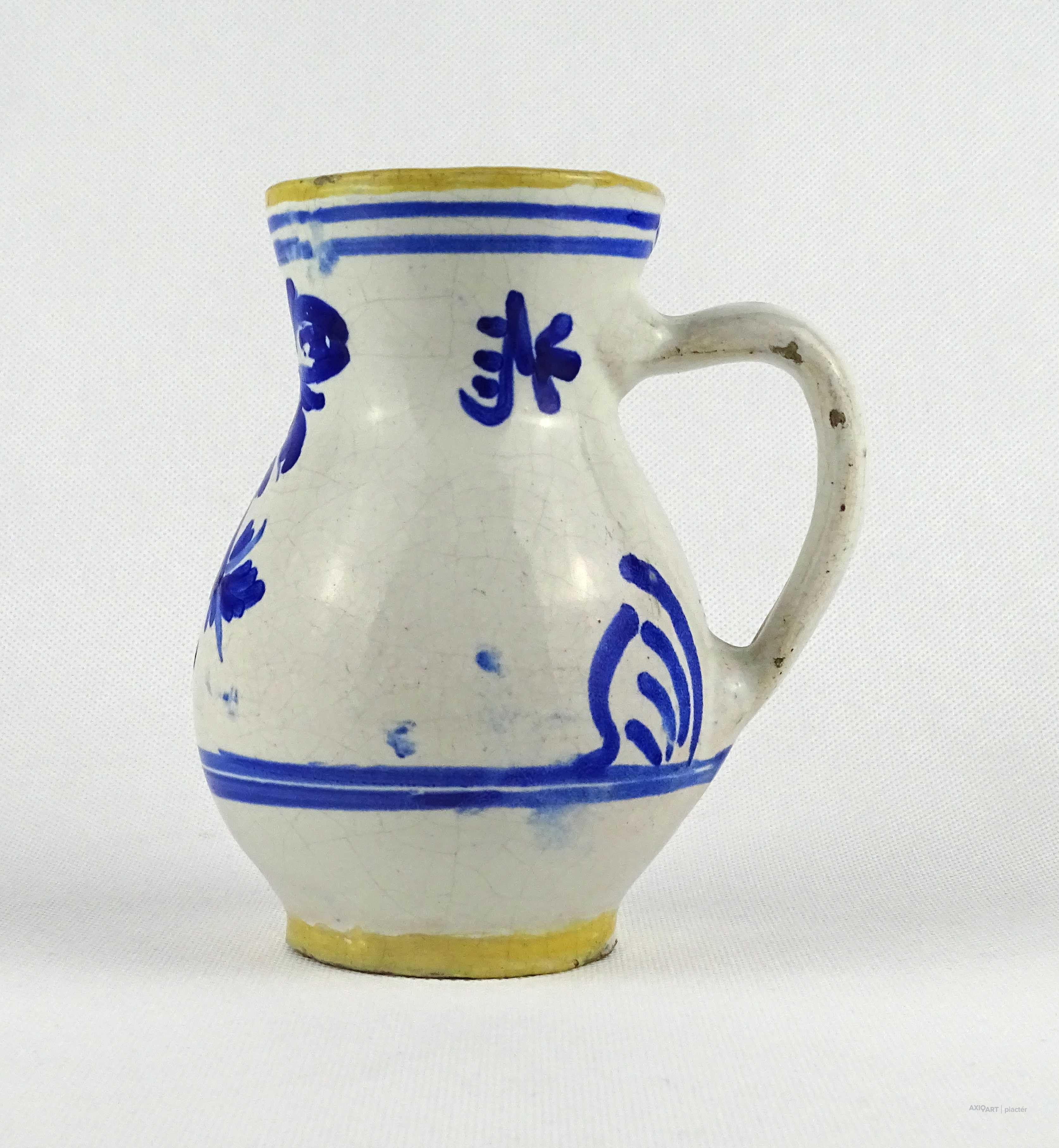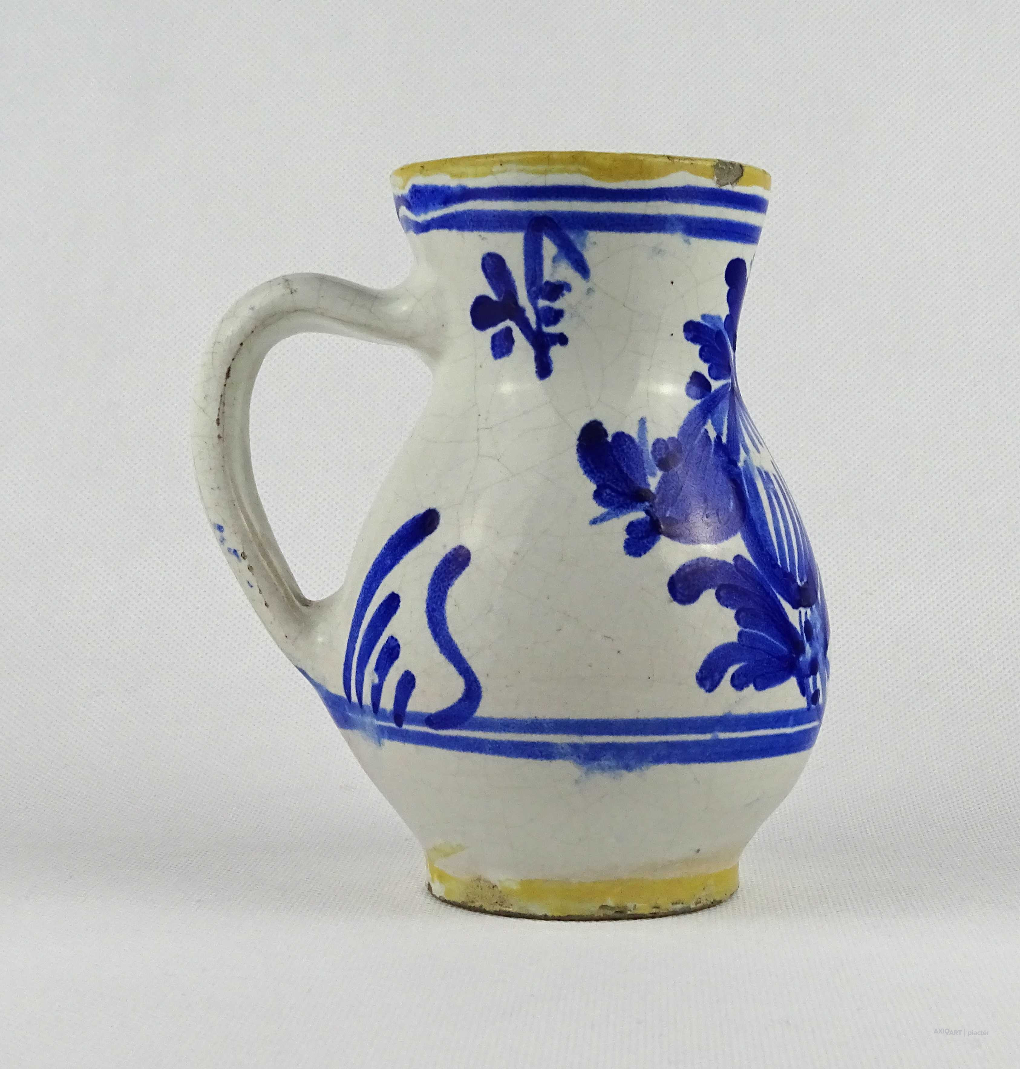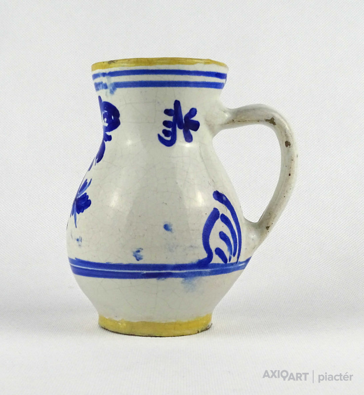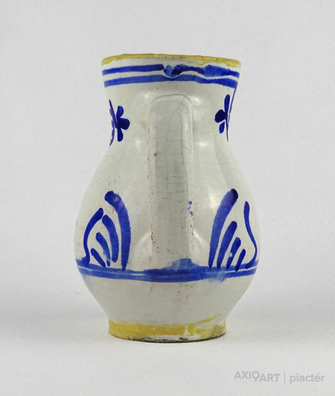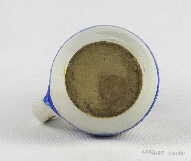 [1V542/X318/2] Antik, szép állapotban megmaradt, a XIX. századi erdélyi, néprajzi fazekas munka, poszthabán bokály, Modor. Magasság: 15 cm Szélesség: 10 cm Hosszúság: 13.3 cm Súly: 0.4 kg