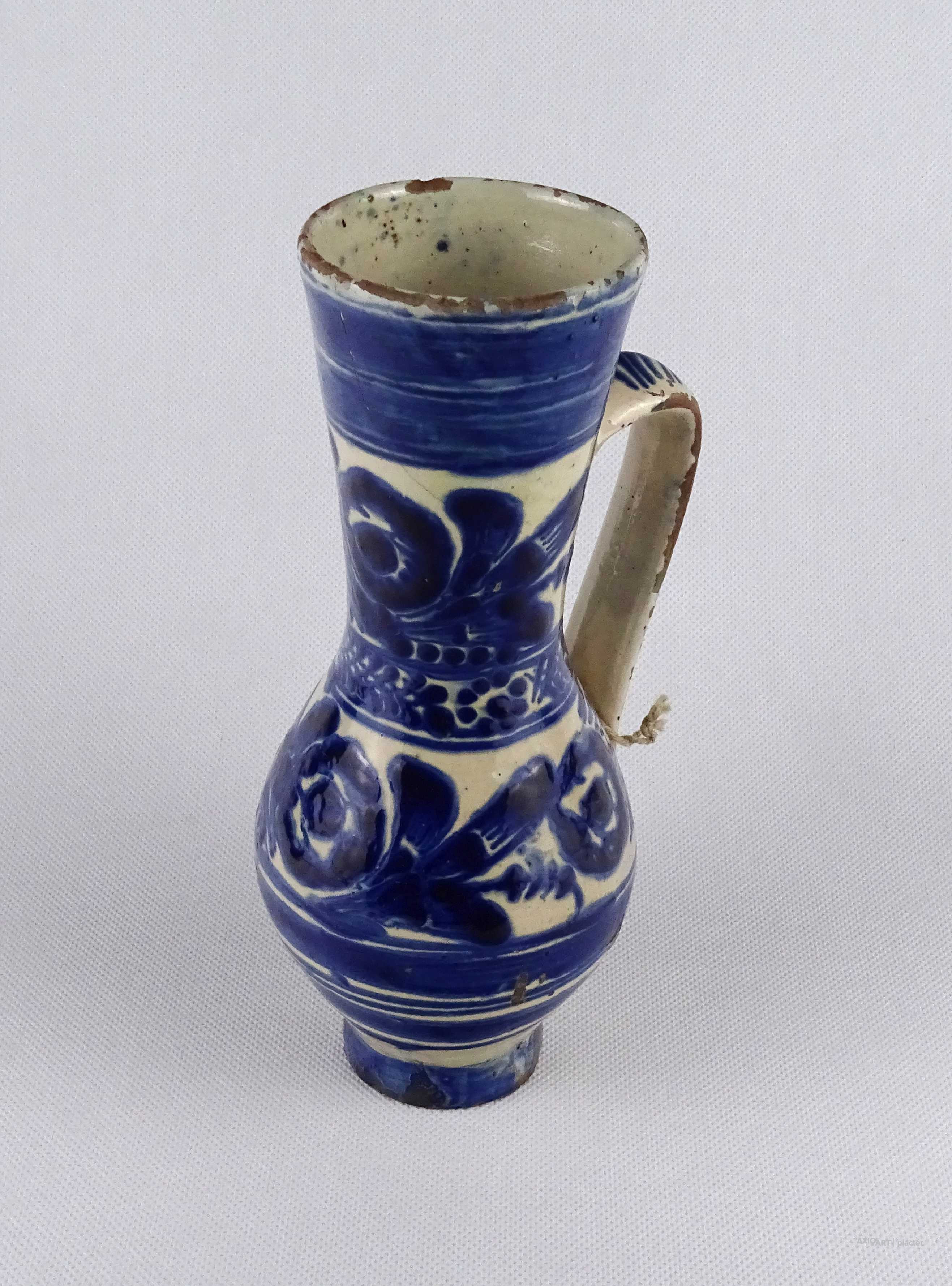 [1V534/X318/2] Antik, szép állapotban megmaradt XIX. századi erdélyi néprajzi fazekas munka, Tordai bokály. Magasság: 22.7 cm Szélesség: 9.5 cm Hosszúság: 12 cm Súly: 0.48 kg