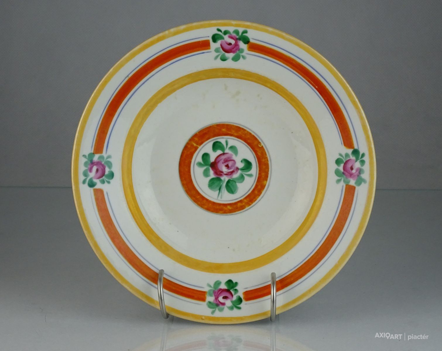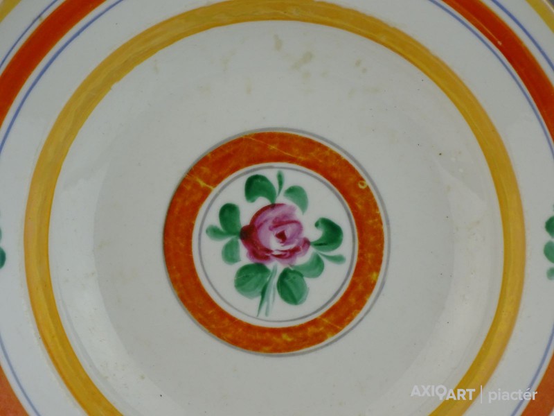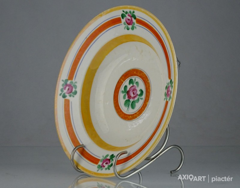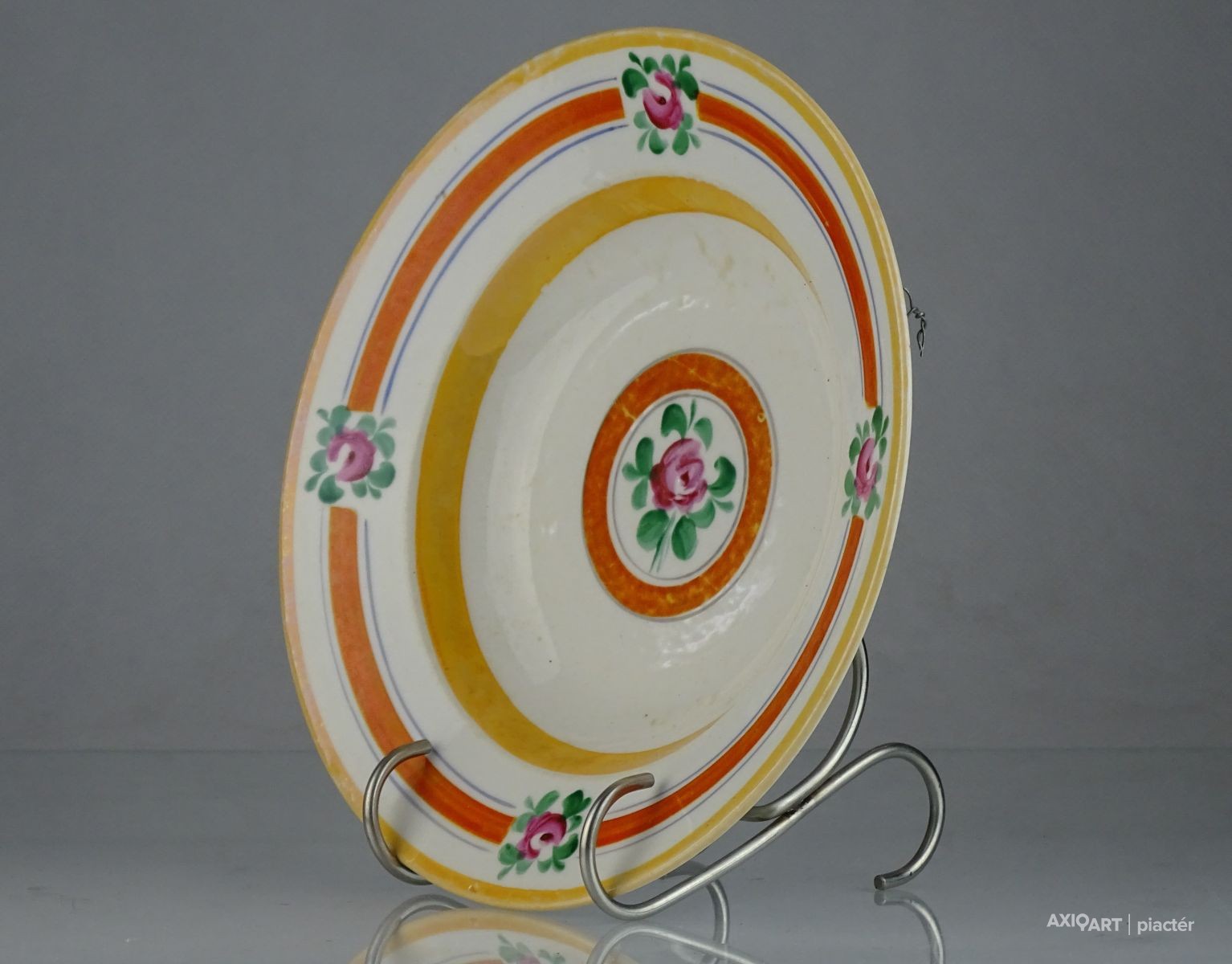 [0L208/UZ-N] Antik, hibátlan állapotú, kézzel festett virágdíszes porcelán falitányér az 1800-as évek végéről. Jelzetlen. Hátoldalán falra akasztási lehetőség. Szélesség: 22 cm Súly: 0.427 kg