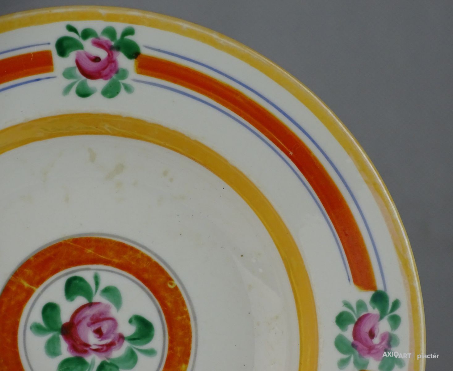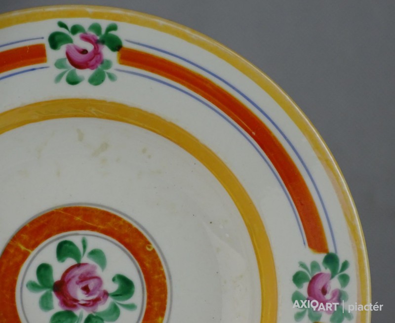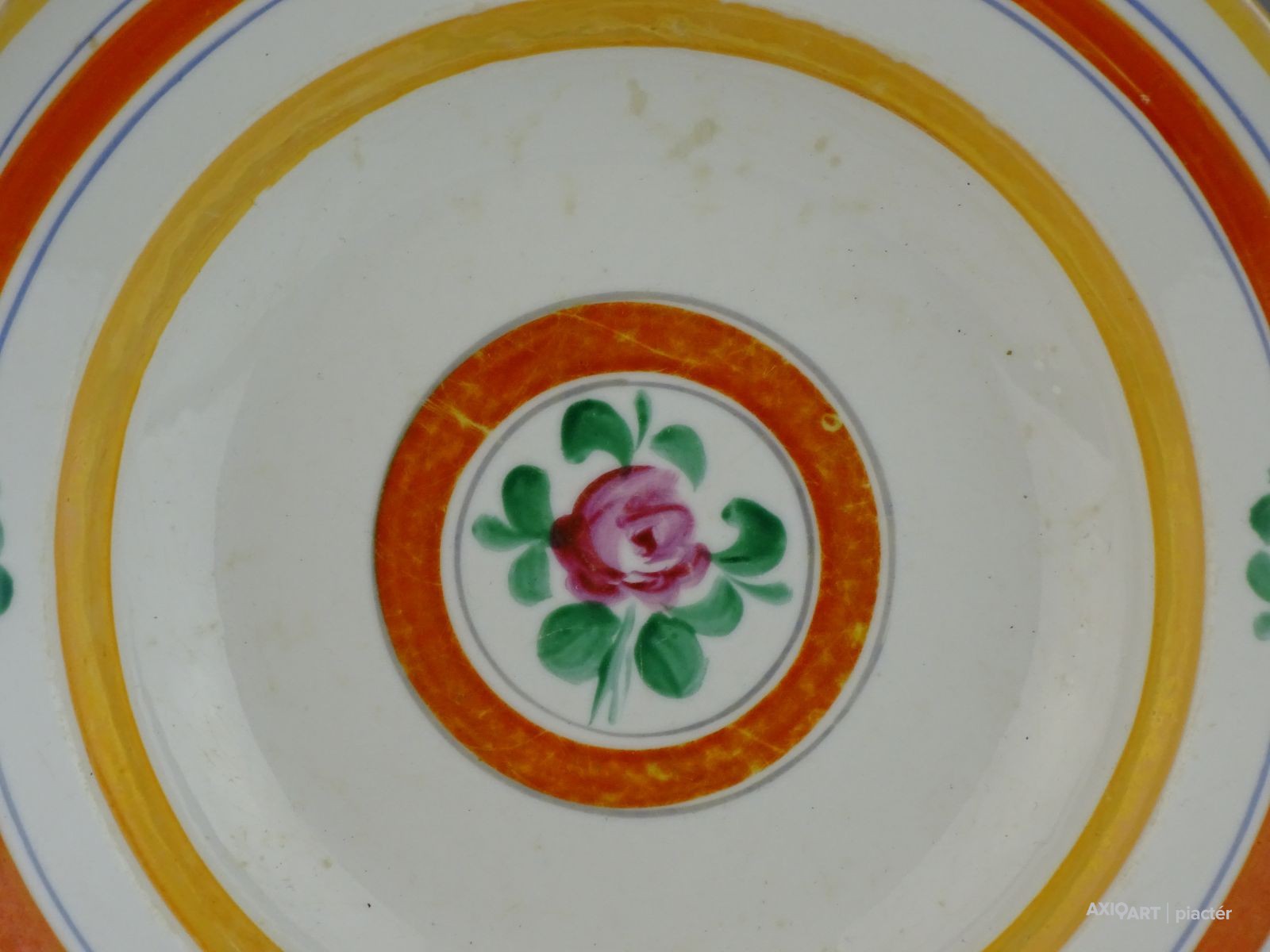 [0L208/UZ-N] Antik, hibátlan állapotú, kézzel festett virágdíszes porcelán falitányér az 1800-as évek végéről. Jelzetlen. Hátoldalán falra akasztási lehetőség. Szélesség: 22 cm Súly: 0.427 kg