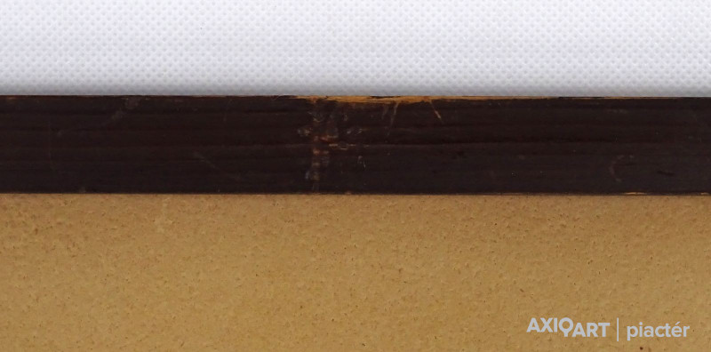 [FKD027/Bp4/60] A kép mérete: 60 x 82 cm keret nélkül. Készült: Olaj, pasztell, Papír (kasírozva) A kép Szabó Zoltán Angyalföldi (Budapest, 1929) alkotása. Jelezve jobbra lent "Szabó Z 73" A festmény jó állapotban van. Keret: Ép Magyar festők és grafikusok életrajzi lexikona I-II. Festő. Rajkai György beszélte rá, hogy jelentkezzék felvételre a Képzőművészeti Főiskolára. 1948-49-ben a Dési Huber-szakkörben rajzolt, festett Gráber Margit vezetésével. 1950-ben jelentkezett a Képzőművészeti Főiskolára, ahol 1951-ben kezdte meg tanulmányait Fónyi Géza, Barcsay Jenő és Domanovszky Endre keze alatt. 1953-54-ben a főiskola megvált tőle, lekerült Tatabányára, ahol a művésznövendékek számára művésztelepet létesítettek. Számos műve kapcsolódik a tatabányai periódushoz, amelynek élményéből még évek múlva is bőven merít. 1955-ben visszakerült a főiskolára, ahol 1958-ban fejezete be tanulmányait. Ezt követően két évig - a Fiatal Művészek Stúdiójának tagjaként - a stúdió műtermében dolgozott. 1960-63 között Derkovits-ösztöndíjban részesült. Kiállító művészként első ízben 1958-ban a VII. Magyar Képzőművészeti Tárlaton szerepelt jelentősebb anyaggal. Ettől kezdve minden nemzeti tárlaton, a Fiatal Képzőművészek Stúdiójának bemutatóin, jelentősebb hazai és külföldön rendezett magyar seregszemléken részt vett alkotásaival (Ernst Múzeum, Műcsarnok, Tiszti Klub Budapest, Veszprém, Szolnok, Tatabánya, Vác, Győr, Kecskemét, Tallin, Berlin, Varsó, Belgrád, Párizs, Moszkva, stb.). Erőteljes formákkal komponált figurális kompozíciókat, portrékat, városképeket, csendéleteket alkotott olajban, pasztellben, szénnel és temperával. A Nyolcak, Nemes Lampért József és a korai Uitz Béla alkotások formai örökségének legrangosabb mai folytatója. A külföldiek közül Siqueiros és D. Rivera gyakoroltak rá nagy hatást, akik leginkább lehetnek expresszív stílusának mintaképei. Szabó végtelen humanizmusa, őszinte hite az alkotásban, a tiszta emberi kapcsolatokban és a szeretetben, az emberi lét himnuszává fokozódik vásznain. Monumentális, óriási lendület jellemzi alakjait, akár táblaképről, szénrajzról, akár monumentális munkáról van szó. Díjak: a Stúdió pályázatának I. díja; Munkácsy-díj; a Szolnoki Festészeti Triennále II. díja; Érdemes Művész. Sok murális alkotást is készített (Sátoraljaújhely, Csongrád, Baja, Bácsalmás, stb.). Alkotásai helyet kaptak a Magyar Nemzeti Galériában, a Legújabbkori Történeti Múzeumban és több vidéki képtárban. (Egri Mária: Szabó Zoltán, MÉ, H.J.: Műv. 1970/8, Műv. 1976/5, A.J.: Műv. 1985/2) Magyar festők és grafikusok életrajzi lexikona I-II. Műgyűjtők és kereskedők kézikönyve Festő. Művészeti tanulmányait a Dési Huber István szakkörben kezdte, ahol Gráber Margit korrigálta. 1950-ben jelentkezett Budapesten, a Képzőművészeti Főiskolára. Fónyi Géza, Barcsay Jenő és Domanovszky Endre voltak a mesterei. Siqueiros és Diego Rivera is nagy hatást gyakoroltak rá, akik leginkább lehetnek expresszív stílusának mintaképei. 1958 óta szerepel hazai és külhoni tárlatokon (Műcsarnok, Ernst Múzeum, stb.). 1960-63 k. Derkovits-ösztöndíjas volt. 1969-ben Munkácsy-díjjal tüntették ki. 1977-ben érdemes művész címet kapott. Végtelen humanizmusa, őszinte hite a munkában, a tiszta emberi kapcsolatokban, a szeretetben, az emberi lét himnuszává fokozódik vásznain. Monumentális, hatalmas lendület jellemzi figuráit, akár táblaképről, szénrajzról akár monumentális műről van szó. Sok murális munkát is készített (Sátoraljaújhely, Csongrád, Baja, Bácsalmás, stb.). A NYOLCAK, Nemes Lampért és a korai Uitz munkák formai örökösének legrangosabb mai folytatója. (MÉ, H.J.: Műv.-1970/8, Műv.-1976/5, A.J.: Műv.-1985/2) Magyar festők és grafikusok adattára Művészeti tanulmányait a Dési Huber szakkörben kezdte, majd 1951-1958-ban Fónyi Géza, Barcsay Jenő és Domanovszky Endre növendéke a főiskolán. 1958-tól minden fontosabb hazai és számos külföldi tárlaton részt vett. Kiállított többek között a Szovjetunióban, Bulgáriában, Jugoszláviában, az NDK-ban, Lengyelországban és Franciaországban. Több vidéki bemutató (Dunaújváros, Szeged, Kecskemét, Szolnok, Győr stb.) mellett 1970-ben az Ernst Múzeumban, 1976-ban a Műcsarnokban jelentkezett gyűjteményes anyaggal. 1976-ban önálló kiállítása volt Tallinban. 1978-ban az Ernst Múzeumban. A Kilencek alapító tagja, és valamennyi kiállításuk résztvevője. 1960-1963-ban a Derkovits-ösztöndíjat, 1969-ben Munkácsy-díjat, 1977-ben érdemes művészi címet kapott. - Művészetében központi helyet foglal el az ember. Végtelen humanizmus, őszinte hite a munkában, a tiszta emberi kapcsolatokban, a szeretetben az emberi lét himnuszává fokozódik vásznain. A Nyolcak formai örökségének legrangosabb mai folytatója. - Irod.: P.Sz.T.: Művész életrajzok. Bp. 1985.; Acsay Judit: Legszívesebben az eget festeném be. Beszélgetés Szabó Zoltánnal. Művészet, 1985. 2. Művészeti lexikon I-IV. Festő. 1951-58 között a Képzőművészeti Főiskolán Fónyi Géza, Barcsay Jenő és Domanovszky Endre tanítványa volt. 1958-tól állítja ki erőteljes formákkal komponált figurális kompozícióit (Almahámozók, Kesztyűs női portré stb.). 1965-ben sgraffitót készített egy sátoraljaújhelyi lakóházra. Művész életrajzok kortárs magyar képzőművészek 1958-ban kapott diplomát Fónyi Géza, Barcsay Jenő és Domanovszky Endre tanítványaként. Azóta minden fontosabb hazai rendezvény résztvevője, gyakorta kiállít külföldön is. Számos vidéki bemutató mellett 1970-ben az Ernst Múzeumban, 1976-ban a Műcsarnokban, 1983-ban a Tihanyi Múzeumban jelentkezett gyűjteménye