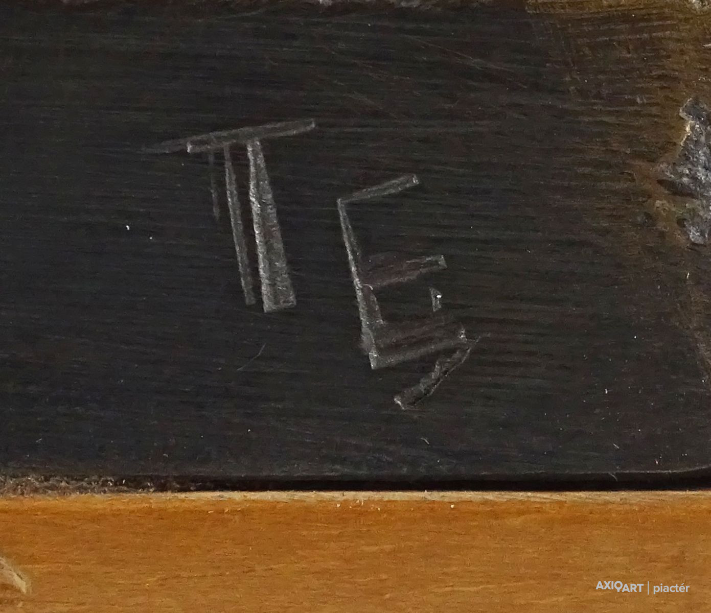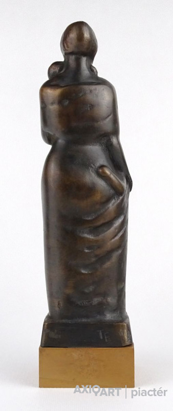 [1M111/X003] Szép állapotú bronz kisplasztika fa talapzaton. Felirat: 24. MISKOLCI TÉVÉ FESZTIVÁL 1984 Jelzés: SZZ Alján címke, rajta felirat: SZENTIRMAI ZOLTÁN Magasság: 8.5 cm Szélesség: 8.7 cm Súly: 0.29 kg Szentirmai Zoltán szobrász Budapest, 1941-12-4 Szerző: Kernács Gabriella-Wehner Tibor 1963-1967: Magyar Képzőművészeti Főiskola, mestere: Somogyi József. 1967-től a Kirakatrendező és Dekoratőr Szabadiskolában tanít rajzot és művészettörténetet. 1972: Fiatal Képzőművészek Stúdiója Egyesület kiállításának díja; 1978: a Szegedi Nyári Tárlat díja; 1981: a VII. Országos Kisplasztikai Biennálé díja; az V. Nemzetközi Kisplasztikai kiállítás megosztott fődíja; 1983: a IV. Országos Éremművészeti Biennálé díja; 1987: Munkácsy-díj; 1995: a Törley kisplasztika- és érempályázat fődíja; 1996: Nemzetközi Alkotótelep, Nyíregyháza, Pro Arte aranyérem; Millecentenáriumi Országos Nyári Tárlat, I. díj, Debrecen. 1979-től Szentendrén él. ~ intellektuális, tűnődő szobrászalkat, virtuóz módon bánik a kővel, agyaggal, bronzzal, a fával. Szobrászatának egyik alapkérdése a “bezártság-kibontakozás-kitörés” gondolatköre. Fa Prometheusa (a 70-es évek elejéről) fenyegető, sarkos, kemény formák közt vergődő lágy, organikus forma, Nikéjén egy talált, vízmosta fadarabot önt bronzba, s lesz belőle térbe úszó, lángként fellobbanó Győzelem-istennő. Vénusz születése c. munkáján hófehér gipszdrapériát szakít át – három fázisban – egy kibomló, előrelendülő női akt. A “bezártság-szabadság” témakörhöz korán megalkot egy alapjelet: egy térbe írt kockaélvázat, ebben – mint ketrecben – lebeg felfüggesztve Déry Tibor hevesen gesztikuláló gipsz portrészobra. Ez a kockakeret – mint az eleve elrendeltség, a végzet, a behatárolt sors jele – írja körül a fehér kőtömbökről felszárnyaló, azokra visszazuhanó Ikarusz bronzalakját, s mint rézkarám fogja be, szorítja össze a Vége a kalandozásoknak c. tömör kisplasztika bronzlovakon hánykolódó harcosait. ~ szobrászatának fontos jellemzője az időutazás. A pályáját szépen indító Művészettörténet c. bronz plakett-sorozaton tömör, statikus dór oszlopformával indul az időjáték, alig mozduló román toronnyal, kapubolttal, majd felszökkenő, szétboruló gótikus csúcsívekkel folytatódik, hogy a reneszánszban áttörjön, kinyíljon a plakett hátfala, s a levegőégen megjelenjen az emberalak. ~ fontos műfaja a plakett és az érem, jól érvényesül benne a finom, szellemes részmegoldások, a kevéssel sokat mondás iránti érzéke. A falakat megnyitó reneszánsz gondolata később míves, különös szépségű kő-bronz kisplasztika-sorozattá érik, amely műfaj ~nak szintén erőssége. Az “időutazások” egyik szép darabja az Üzenet az etruszkoknak c., meghasadt kerámiatorzó, rajta titokzatos időjelek, ruharedők, etruszk tombabejárat halvány rajza. ~ szívesen épít szobrot egy-egy frappáns ötletre: az agyonkoptatott Dózsa-témában is tudott újszerűt hozni az üszkös fatrónra ráolvadt bronz testlenyomat-darabokkal. Különösen érzékivé, mívessé, izgalmassá teszi szobrait a különböző anyagok alkalmazása, az egymásba ágyazott-telepített kő, bronz, fa ellentétének feszültsége. Ezzel él korai, félelmetes, rusztikus kő ősállat-bagoly szobrán, amelynek lábai bronz gépmarkolók, s a Magyar gályarab prédikátorok emlékszobrán, ahol a nevekkel teleírt sziklasír-kőtömb hajóból sírjelforma bronzárboc és bronzevezők nőnek. Köztéri munkáiban folytatja a magyar emlékműszobrászat hagyományait (Vitéz János kőpadon ülő bronzszobra Esztergomban), de él a XX. század számára kedves szobrászeszközével: a megmintázott vagy megfaragott tárgy szoborrá emelésével is (kő Szőlőprése Nagyrédén). Irodalom kiállítása, Művészet, 1971/9. [K. GY.]: ~, Művészet, 1983/8. Emlékterek. ~ szobrairól, Művészet, 1984 LÓSKA L. SZERK.: Pest megye képzőművészete. Művészettörténeti tanulmányok, Szentendre, 1990 KOVÁCS P.: A tegnap szobrai. Fejezetek a magyar szobrászat közelmúltjából, Szombathely, 1992 CHIKÁN B.: Érmek és majdnem érmek Szentendréről (kat., bev. tan., Szentendrei Képtár, Szentendre, 1994). Film KERNÁCS G.-B. FARKAS T.: A TV Galériája, MTV, 1974. Egyéni kiállítások Egyéni kiállítások 1977 • Fészek Klub, Budapest 1994 • Műhely Galéria, Szentendre. Válogatott csoportos kiállítások Válogatott csoportos kiállítások 1978 • Szegedi Nyári Tárlat 1981 • VII. Országos Kisplasztikai Biennálé, Pécs • V. Nemzetközi Kisplasztikai kiállítás, Műcsarnok, Budapest 1983, 1987 • IV., VI. Országos Éremművészeti Biennálé, Sopron Szentendrei művészek kiállításai, Műhely Galéria, Budapest • Ferenczy Múzeum, Szentendre • Szentendrei Képtár, Szentendre 1994 • Érmek és majdnem érmek, Szentendrei szobrászok kiállítása, Szentendrei Képtár, Szentendre 1995 • Törley kisplasztika és érempályázat 1996 • Nemzetközi Alkotótelep, Nyíregyháza • Millecentenáriumi Országos Nyári Tárlat, Debrecen 1997 • XI. Országos Kisplasztikai Biennálé, Pécs 2001 • Szobrászaton innen és túl, Műcsarnok. Művek közgyűjteményekben Művek közgyűjteményekben Magyar Nemzeti Galéria, Budapest Liszt Ferenc Múzeum, Sopron Forrás: artportal.hu