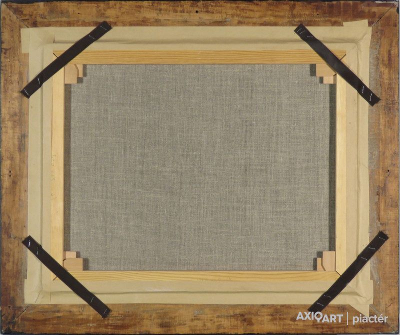 [FK0037/Z018] A kép mérete: 50 x 70 cm keret nélkül. Készült: Olaj, Vászon A kép Paizs László (Szentpéterúr, 1935) alkotása. Jelezve Jobbra lent "P. L." A festmény jó állapotban van. Keret: Ép A festmény hátoldalán a Képcsarnokvállalat címkéje található. Magyar festők és grafikusok életrajzi lexikona I-II. Festő. Tanulmányait a budapesti Iparművészeti Főiskolán végezte 1959-ben. Z. Gács György, Rákosy Zoltán és Szentiványi Lajos növendéke volt. A '60-as évek első felében hagyományosabb felfogású olajképeket festett, mozaikokat, freskókat, utóbb a pop-art körébe tartozó, a francia Arman munkáival rokon műveket alkotott. 1961 óta kiállító művész. Egyéni (Fényes Adolf Terem, Csók Galéria, Műcsarnok, Magyar Nemzeti Galéria, Halászbástya, Bástya Galéria, Vigadó Galéria, Budapest Galéria, Győr, Szombathely, Szeged, Zalaegerszeg, Duisburg, Aix-en-Provence, stb). és vegyes (Ernst Múzeum, Műcsarnok, Óbuda Galéria, Magyar Nemzeti Galéria, Csók Galéria, Vigadó Galéria, Székesfehérvár, Kaposvár, Pécs, Hódmezővásárhely, Firenze, Milano, Padova, Nápoly, Velence, Düsseldorf, Aachen, Genf, stb) tárlatokon vett részt. 1980-ban Munkácsy-díjjal jutalmazták, 1988-ban Érdemes Művész kitüntető elismerésben részesült. Munkáit őrzi a Magyar Nemzeti Galéria, a Fővárosi Képtár, a szombathelyi képtár, a pécsi Janus P. Múzeum, a székesfehérvári István Király Múzeum és a dunaszerdahelyi Kortárs Magyar Galéria. (H.B.: Műv, 1972/4, K.Gy.: Műv. 1977/2, K.G.: Műv. 1978/10, M.L.: Műv, 1983/5, R.G.: Műv, 1987/9, Sz.Gy.: Új Műv. 1995/4, MK) Magyar festők és grafikusok életrajzi lexikona I-II. Műgyűjtők és kereskedők kézikönyve Festő. Tanulmányait a bp.-i Iparművészeti Főiskolán végezte. Mozaikokat ferskókat, utóbb a pop-art körébe tartozó, a francia Arman műveivel rokon műveket alkotott. Mozaikok: a Szegedi Megyei Tanács, a Pécsi Óvoda, a Gödöllői Agrártudományi Egyetem. Freskók: Budapest - Csatárka úti Gyermekotthon. 1971-ben a Fényes Adolf Teremben volt kiállítása, 1983-ban pedig a szegedi Móra Ferenc Múzeumban nagyszabású tárlatokon mutatta be munkáit. 1988-ban érdemes művész kitüntető elismerésben részesült. (MK) Magyar festők és grafikusok adattára Az Iparművészeti Főiskolán végzett 1959-ben. Mozaikokat (Szeged, Megyei Tanács; Pécs, Óvoda; Gödöllő, Agrártudományi Egyetem), freskókat (Budapest, Csatárka úti Gyermekotthon), újabban a pop art körébe tartozó, a francia Arman műveivel rokon műveket alkotott. 1971-ben a Fényes Adolf Teremben nyílt kiállítása. 1983 februárjában a szegedi Móra Ferenc Múzeumban megrendezett nagyszabású tárlaton mutatta be alkotásait. 1988-ban érdemes művész kitüntető elismerésben részesült. - MK Művészeti lexikon I-IV. (Szentpéterur, 1935. dec. 26.- ): festő. Az Iparművészeti Főiskolán 1959-ben végzett Rákosy Zoltán, Z. Gách György és Szentiványi Lajos növendékeként. Épületdiszítő mozaikokat, (Szeged, Megyei Tanács, 1961; Pécs, Óvoda, 1964), műanyagfreskókat (Bp., Csatárka úti Gyermekotthon, 1964) és gobelinterveket készít. Kortárs magyar művészeti lexikon I-III. Festő, szobrász, grafikus. 1959: MIF, mesterei: Z. Gács György, Rákosy Zoltán, Szentiványi Lajos. 1980: Munkácsy-díj; 1988: érdemes művész. Főiskolás éveinek második felében, majd azt követően számos murális munka kivitelezésében vett részt, Fónyi Géza, Konecsni György, Z. Gács György, Rákosi Zoltán és Domanovszky Endre mellett dolgozva. A 60-as évek első felének hagyományosabb fölfogású olajképeket festett. 1964-ben a Velencei B.-n megismerkedett az amerikai pavilonban a pop art Európában akkor még újnak számító törekvésével, és részben ez inspirálta, hogy 1967-ben textil, fém, bőr anyagú "varrottas" képeket küldjön az FKS éves tárlatára; a megnyitó előtt többek között az ő munkáit is eltávolították a falról. A 70-es években pop art-os objekteket (A trónörököspár politikai gyilkosság áldozata lett, 1970, plexiüveg, újság, szarvasbogarak), majd konstruktív, átlátszó plexiüveg plasztikákat készített belső fénytörő határfelületekkel. A 80-as években készültek az anyagában színezett, konstruktív, nagyméretű poliészter szobrai, majd színes poliészter táblaképeket alkotott, mesterségesen roncsolt felületekkel, mintha régészeti leletek vagy atomtámadás utáni festmény-szurrogátumok lennének. Ekkor kezdett organikus plaszikájú bronzszobrokat is mintázni. A 90-es években, a táblaképek és szobrok mellett nagyméretű, egyedi grafikákat készített, formavilágában némileg a roncsolt táblaképekből kiindulva, de szinte kizárólag az emberi alakból elvonatkoztatott torzókat megjelenítve. Ek: 1966: Művészklub, Győr; 1971: Fényes A. T.; 1972: Bercsényi 28-30 G.; 1973: BME B-épület; 1976: Csók G.; 1977: G. Hildebrandt, Duisburg (NSZK); 1979: Bástya G., Halászbástya; Helyőrségi Műv. H., Nagyatád; József A. Műv. Közp., Szeged; Göcsej M., Zalaegerszeg; 1982: Bezzegh G., Küsnacht (CH); 1983: Móra F. M., Szeged; 1987: Műcsarnok (kat.); MNG; 1988: Pandora G., Badacsonytomaj; 1989: Parktheatter, Iserlohn (NSZK); Qualitas G.; Hevesi S. Színház, Zalaegerszeg; 1990: Vasarely Fondation (Ferdinánd Judittal, Fóth Ernővel), Aix-en-Provence (FR); 1994: Vigadó G.; 1997: Pest Center G.; 1998: Budapest G. (kat.); 1999: Pest Center G. (kat); G. Arcis, Sárvár; MMA, Bp.; 2001: SZK, Szhely; Ernst M. (kat.) Vcsk: 1961, 1964, 1966: FKS, Ernst M.; 1962: 9. Magyar Képzőműv. kiállítás, Műcsarnok; 1967: Mai magyar festészet, Új-Delhi; 1969: Vas megyei művészek, Savaria M., Szhely; V. Orsz. Grafikai B., Miskolc; 1971: Új művek, Műcsarnok; 1972: Fiatal művészek Budapestről. Likovni Salon, Újvidék (YU); 1972, 1973: Balatonboglár