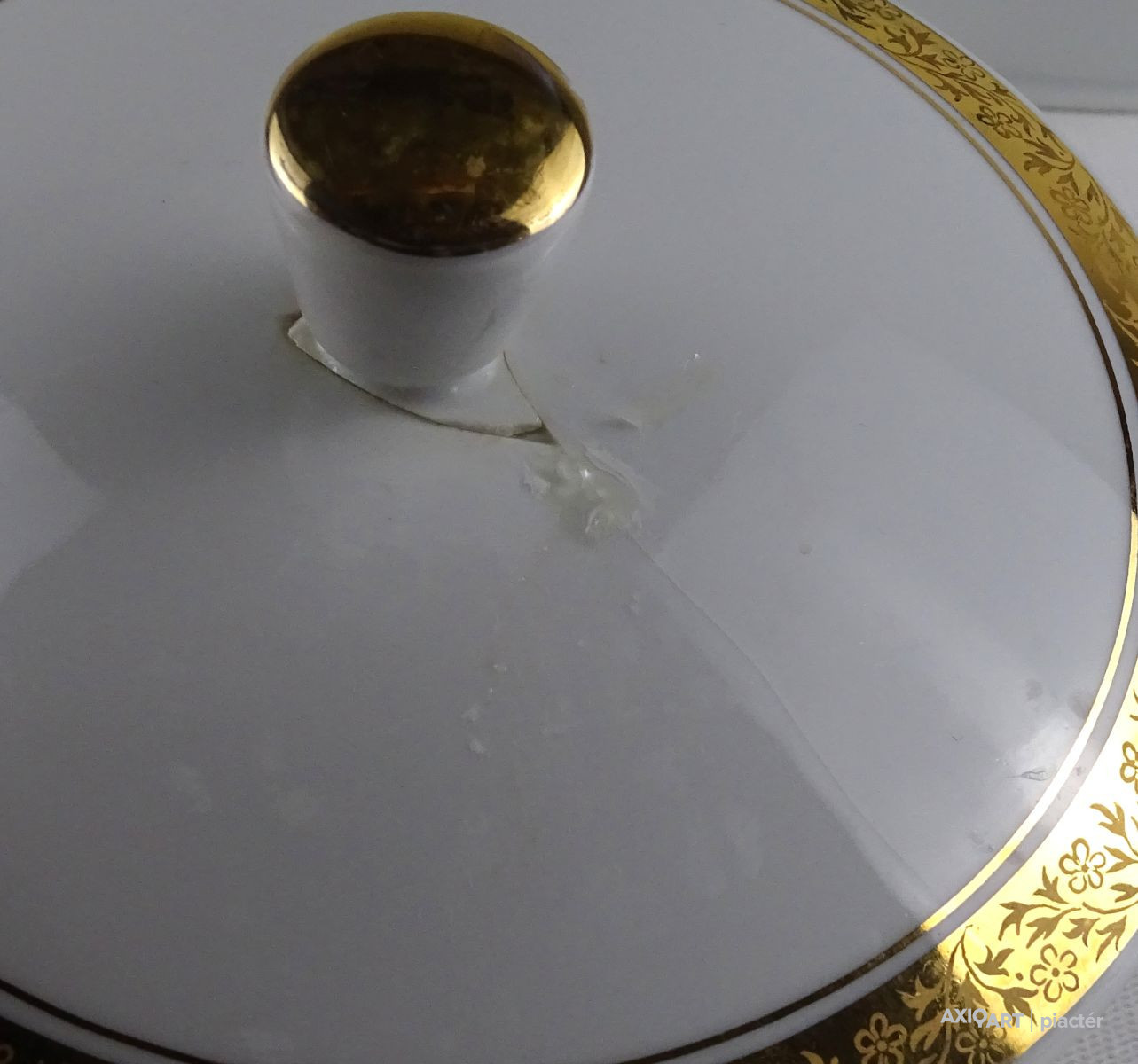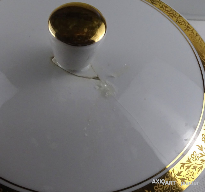 - 1 darab levesestál (19 x 23 x 25 cm) Teteje sérült, ragasztott.