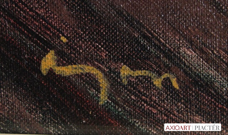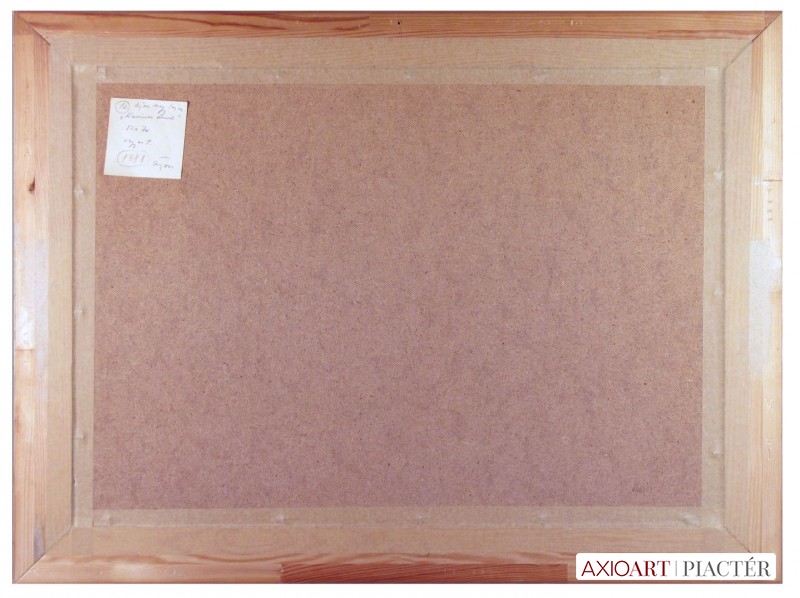 [FK0037/Z018] A kép mérete: 50 x 70 cm keret nélkül. Készült: Olaj, Vászon A kép Paizs László (Szentpéterúr, 1935) alkotása. Jelezve Jobbra lent "P. L." A festmény jó állapotban van. Keret: Ép A festmény hátoldalán a Képcsarnokvállalat címkéje található. Magyar festők és grafikusok életrajzi lexikona I-II. Festő. Tanulmányait a budapesti Iparművészeti Főiskolán végezte 1959-ben. Z. Gács György, Rákosy Zoltán és Szentiványi Lajos növendéke volt. A '60-as évek első felében hagyományosabb felfogású olajképeket festett, mozaikokat, freskókat, utóbb a pop-art körébe tartozó, a francia Arman munkáival rokon műveket alkotott. 1961 óta kiállító művész. Egyéni (Fényes Adolf Terem, Csók Galéria, Műcsarnok, Magyar Nemzeti Galéria, Halászbástya, Bástya Galéria, Vigadó Galéria, Budapest Galéria, Győr, Szombathely, Szeged, Zalaegerszeg, Duisburg, Aix-en-Provence, stb). és vegyes (Ernst Múzeum, Műcsarnok, Óbuda Galéria, Magyar Nemzeti Galéria, Csók Galéria, Vigadó Galéria, Székesfehérvár, Kaposvár, Pécs, Hódmezővásárhely, Firenze, Milano, Padova, Nápoly, Velence, Düsseldorf, Aachen, Genf, stb) tárlatokon vett részt. 1980-ban Munkácsy-díjjal jutalmazták, 1988-ban Érdemes Művész kitüntető elismerésben részesült. Munkáit őrzi a Magyar Nemzeti Galéria, a Fővárosi Képtár, a szombathelyi képtár, a pécsi Janus P. Múzeum, a székesfehérvári István Király Múzeum és a dunaszerdahelyi Kortárs Magyar Galéria. (H.B.: Műv, 1972/4, K.Gy.: Műv. 1977/2, K.G.: Műv. 1978/10, M.L.: Műv, 1983/5, R.G.: Műv, 1987/9, Sz.Gy.: Új Műv. 1995/4, MK) Magyar festők és grafikusok életrajzi lexikona I-II. Műgyűjtők és kereskedők kézikönyve Festő. Tanulmányait a bp.-i Iparművészeti Főiskolán végezte. Mozaikokat ferskókat, utóbb a pop-art körébe tartozó, a francia Arman műveivel rokon műveket alkotott. Mozaikok: a Szegedi Megyei Tanács, a Pécsi Óvoda, a Gödöllői Agrártudományi Egyetem. Freskók: Budapest - Csatárka úti Gyermekotthon. 1971-ben a Fényes Adolf Teremben volt kiállítása, 1983-ban pedig a szegedi Móra Ferenc Múzeumban nagyszabású tárlatokon mutatta be munkáit. 1988-ban érdemes művész kitüntető elismerésben részesült. (MK) Magyar festők és grafikusok adattára Az Iparművészeti Főiskolán végzett 1959-ben. Mozaikokat (Szeged, Megyei Tanács; Pécs, Óvoda; Gödöllő, Agrártudományi Egyetem), freskókat (Budapest, Csatárka úti Gyermekotthon), újabban a pop art körébe tartozó, a francia Arman műveivel rokon műveket alkotott. 1971-ben a Fényes Adolf Teremben nyílt kiállítása. 1983 februárjában a szegedi Móra Ferenc Múzeumban megrendezett nagyszabású tárlaton mutatta be alkotásait. 1988-ban érdemes művész kitüntető elismerésben részesült. - MK Művészeti lexikon I-IV. (Szentpéterur, 1935. dec. 26.- ): festő. Az Iparművészeti Főiskolán 1959-ben végzett Rákosy Zoltán, Z. Gách György és Szentiványi Lajos növendékeként. Épületdiszítő mozaikokat, (Szeged, Megyei Tanács, 1961; Pécs, Óvoda, 1964), műanyagfreskókat (Bp., Csatárka úti Gyermekotthon, 1964) és gobelinterveket készít. Kortárs magyar művészeti lexikon I-III. Festő, szobrász, grafikus. 1959: MIF, mesterei: Z. Gács György, Rákosy Zoltán, Szentiványi Lajos. 1980: Munkácsy-díj; 1988: érdemes művész. Főiskolás éveinek második felében, majd azt követően számos murális munka kivitelezésében vett részt, Fónyi Géza, Konecsni György, Z. Gács György, Rákosi Zoltán és Domanovszky Endre mellett dolgozva. A 60-as évek első felének hagyományosabb fölfogású olajképeket festett. 1964-ben a Velencei B.-n megismerkedett az amerikai pavilonban a pop art Európában akkor még újnak számító törekvésével, és részben ez inspirálta, hogy 1967-ben textil, fém, bőr anyagú "varrottas" képeket küldjön az FKS éves tárlatára; a megnyitó előtt többek között az ő munkáit is eltávolították a falról. A 70-es években pop art-os objekteket (A trónörököspár politikai gyilkosság áldozata lett, 1970, plexiüveg, újság, szarvasbogarak), majd konstruktív, átlátszó plexiüveg plasztikákat készített belső fénytörő határfelületekkel. A 80-as években készültek az anyagában színezett, konstruktív, nagyméretű poliészter szobrai, majd színes poliészter táblaképeket alkotott, mesterségesen roncsolt felületekkel, mintha régészeti leletek vagy atomtámadás utáni festmény-szurrogátumok lennének. Ekkor kezdett organikus plaszikájú bronzszobrokat is mintázni. A 90-es években, a táblaképek és szobrok mellett nagyméretű, egyedi grafikákat készített, formavilágában némileg a roncsolt táblaképekből kiindulva, de szinte kizárólag az emberi alakból elvonatkoztatott torzókat megjelenítve. Ek: 1966: Művészklub, Győr; 1971: Fényes A. T.; 1972: Bercsényi 28-30 G.; 1973: BME B-épület; 1976: Csók G.; 1977: G. Hildebrandt, Duisburg (NSZK); 1979: Bástya G., Halászbástya; Helyőrségi Műv. H., Nagyatád; József A. Műv. Közp., Szeged; Göcsej M., Zalaegerszeg; 1982: Bezzegh G., Küsnacht (CH); 1983: Móra F. M., Szeged; 1987: Műcsarnok (kat.); MNG; 1988: Pandora G., Badacsonytomaj; 1989: Parktheatter, Iserlohn (NSZK); Qualitas G.; Hevesi S. Színház, Zalaegerszeg; 1990: Vasarely Fondation (Ferdinánd Judittal, Fóth Ernővel), Aix-en-Provence (FR); 1994: Vigadó G.; 1997: Pest Center G.; 1998: Budapest G. (kat.); 1999: Pest Center G. (kat); G. Arcis, Sárvár; MMA, Bp.; 2001: SZK, Szhely; Ernst M. (kat.) Vcsk: 1961, 1964, 1966: FKS, Ernst M.; 1962: 9. Magyar Képzőműv. kiállítás, Műcsarnok; 1967: Mai magyar festészet, Új-Delhi; 1969: Vas megyei művészek, Savaria M., Szhely; V. Orsz. Grafikai B., Miskolc; 1971: Új művek, Műcsarnok; 1972: Fiatal művészek Budapestről. Likovni Salon, Újvidék (YU); 1972, 1973: Balatonboglár