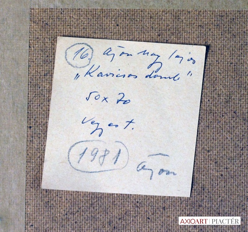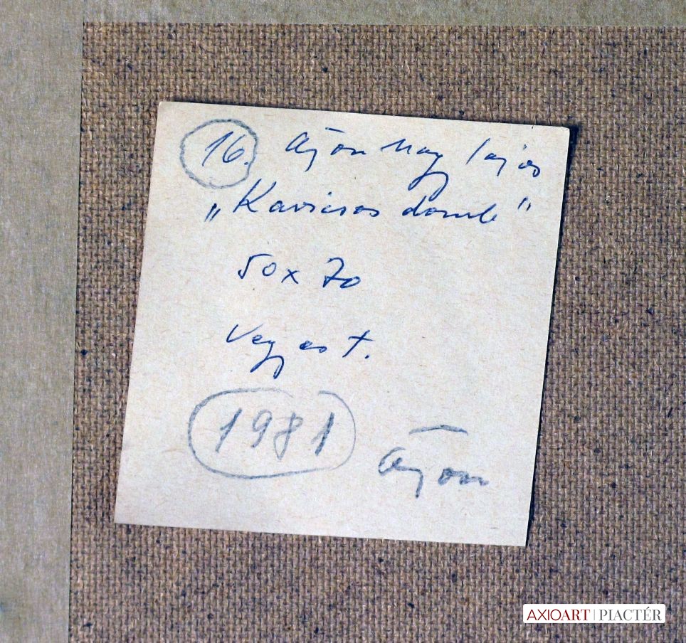 A festmény hátoldalán autográf írással: 16. Áron Nagy Lajos "Kavicsos domb" 50x70 vegyes t. 1981 Áron