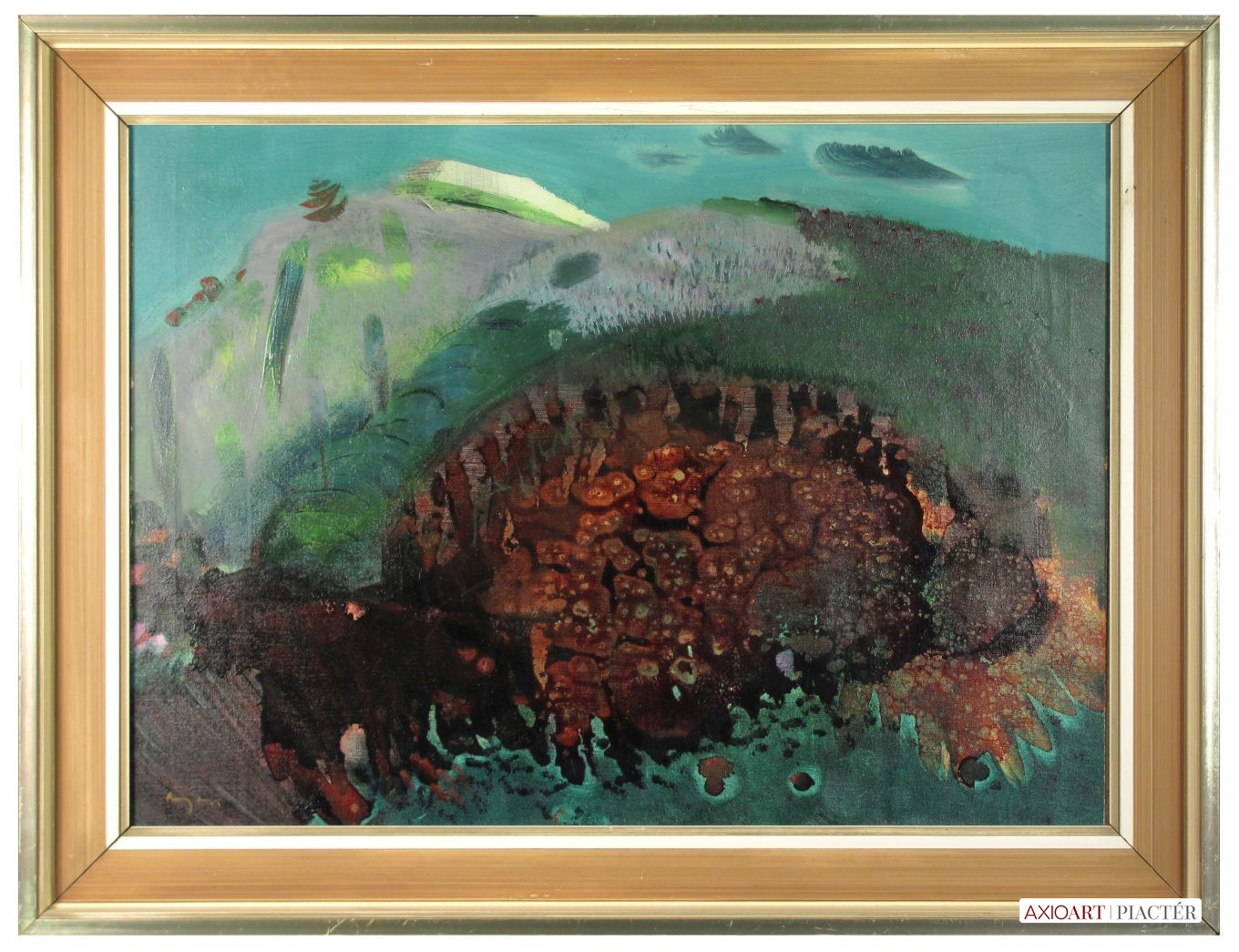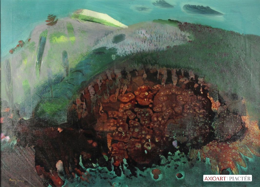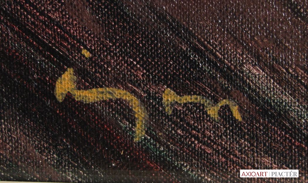 [FKA520/Bp7/22] A kép mérete: 50 x 70 cm keret nélkül. Készült: olaj, akrill, Vászon A kép Áron Nagy Lajos (Budapest, 1913, Székesfehérvár, 1987) alkotása. Jelezve balra lent "Áron" A festmény jó állapotban van. Keret: Ép A festmény hátoldalán autográf írással: 16. Áron Nagy Lajos "Kavicsos domb" 50x70 vegyes t. 1981 Áron Magyar festők és grafikusok életrajzi lexikona I-II. Festő. 1933-38 között a budapesti Képzőművészeti Főiskolán tanult Benkhard Ágost irányítása mellett. Ösztöndíjjal több európai városban járt. 1939-től Székesfehérvárott dolgozott, mint rajzpedagógus. 1935-től vett részt tárlatokon. 1943-ban gyűjteményes kiállítása volt a fővárosban, 1955-ben a Fényes Adolf Teremben, 1959-ben, 1964-ben és 1973-ban Székesfehérvárott, 1967-ben a Csók Galériában, 1969-ben Győrött, 1973-ban Egerben, 1976-ban Veszprémben és Várpalotán. Számos műv. díj tulajdonosa. 1938-ban a Balló-díjat, 1943-ban a római collegium Hungaricum-díjat, 1958-ban Alba Regia-díjat, 1965-ben Csók István-díjat, 1956-ban és 1967-ben Munkácsy-díjat kapott. "Csongor és Tünde" című pannója a Vörösmarty Színházban, az "Ezeréves Fehérvár" című nagyméretű munkája a Székesfehérvári Velence Szállóban található. Műveit a '30-as évek posztimpresszionizmusával ötvöző expresszivitás jellemzi. A lírai hangulatú, finom festőiségű életképektől, tájképektől és portréktól az egészen elvont dekoratív folthatásokig Áron szinte mindent kipróbált. A liptói táj élménye volt az alapindok ahhoz a kísérlethez, mely egész munkásságát foglalkoztatta. Munkái megtalálhatók a Magyar Nemzeti Galériában és a székesfehérvári István Király Múzeumban. (ML, S.P.: Műv. 1968/3, F.M.K.: Műv. 1978) Magyar festők és grafikusok adattára Tanulmányait a Képzőművészeti Főiskolán végezte 1933-1938 között, ahol Benkhardt Ágost volt a mestere. Ösztöndíjjal bejárta a nyugateurópai nagyvárosokat. 1939 óta Székesfehérváron volt rajztanár. 1935 óta jelentkezik a kiállításokon: 1955-ben a Fényes Adolf Teremben, 1959-ben és 1973-ban Székesfehérvárott, 1967-ben a Csók Galériában, 1969-ben Győrött, 1973-ban Egerben, 1974-ben a Csepel Galériában. 1976-ban Veszprémben és Várpalotán volt önálló tárlata. Számos kitüntetés tulajdonosa: 1958-ban Alba Regia, 1965-ben Csók István díj, 1956-ban és 1967-ben Munkácsy-díjat kapott. Posztimpresszionisztikus tájképeket és portrékat festett. "Csongor és Tünde" c. pannója a Vörösmarty Színházban, az "Ezeréves Fehérvár" c. nagyméretű alkotása a székesfehérvári Velence Szállóban található. Képei vannak a MNG-ban és a székesfehérvári István király Múzeumban. - ML. Magyar festők és grafikusok életrajzi lexikona I-II. Műgyűjtők és kereskedők kézikönyve Festő. 1933-38 k. a bp.-i Képzőművészeti Főiskolán tanult Benkhard Ágostnál. Ösztöndíjjal több európai városban járt. 1939-től Székesfehérvárott működött, mint rajztanár. 1935-től szerepelt tárlatokon. 1943-ban gyűjteményes tárlata volt a fővárosban, 1955-ben a budapesti Fényes Adolf Teremben, 1959-ben, 1964-ben és 1973-ban Székesfehérvárott, 1967-ben a Csók Galériában, 1969-ben Győrött, 1973-ban Egerben, 1976-ban Veszprémben és Várpalotán. Számos díj és kitüntetés tulajdonosa. 1938-ban a Balló-díjat, 1943-ban a római Collegium Hungaricum díját, 1958-ban Alba Regia-díjat, 1965-ben Csók István-díjat, 1956-ban és 1967-ben Munkácsy-díjat kapott. "Csongor és Tünde" c. pannója a Vörösmarty Színházban, az "Ezeréves Fehérvár" c. nagyméretű munkája a székesfehérvári Velence Szállóban található. Munkáit a 30-as évek posztimpresszionizmusával ötvöző expresszivitás jellemzi. A lírai hangulatú, finom festőiségű életképektől, tájképektől és portréktól az egészen elvont dekoratív folthatásokig szinte mindent kipróbált. A liptói táj élménye volt az alapindok ahhoz a kísérlethez, mely egész munkásságát foglalkoztatta. Munkái megtalálhatók a MNB-ban és a székesfehérvári István Király Múzeumban. (ML, S.P.: Műv. 1968/3, F.M.K.: Műv. 1978) Művészeti lexikon I-IV. Festő, Munkácsy-díjas. 1933-38 között a Képzőművészeti Főiskolán tanult Benkhardt Ágostnál. Ösztöndíjjal bejárta a Ny-európai nagyvárosokat. 1939 óta Székesfehérváron középiskolai tanár. 1943-ban és 1955-ben gyűjt. kiállítása volt Bp.-en, 1964-ben Székesfehérváron. Tájképeket, portrékat fest. Művész életrajzok kortárs magyar képzőművészek 1933-1938 között Benkhardt Ágost növendéke a Képzőművészeti Főiskolán, majd a Balló Ede-ösztöndíjjal bejárta Nyugat-Európát. Újabban Bulgáriában, Csehszlovákiában, Görögországban, Lengyelországban és Finnországban volt tanulmányúton. 1939 óta Székesfehérvárott művész-pedagógus. 1935 óta jelentkezik a kiállításokon, 1955-ben a Fényes Adolf Teremben, 1959-ben, 1964-ben, 1973-ban, 1981-ben és 1983-ban Székesfehérvárott, 1967-ben és 1982-ben a Csók Galériában, 1969-ben Győrött, 1973-ban Egerben, 1976-ban Veszprémben és Várpalotán, 1979-ben Dunaújvárosban, 1980-ban a Bolgár Kulturális Központban voltak jelentősebb tárlatai. Számos művészeti elismerés - Alba Regia-díj (1958), Csók István-érem (1965), Velinszky László-díj (1970) stb. - kitüntetettje, a Munkácsy-díj (1956, 1967) tulajdonosa. - Legkedvesebb műfaja a tájkép, indulásakor a Tisza-vidék, később a Velencei tó, a Balaton, majd utazásai nyomán görög, bolgár és szlovákiai tájak ihlették. Stílusbelileg a harmincas évek poszt-impresszionizmusából kinőtt expresszivitás jellemi, amelyen belül szinte minden megoldást kipróbált a lírai életképtől a dekoratív foltfestésig. Művészetének erénye, hogy mindezt saját törvényei szer