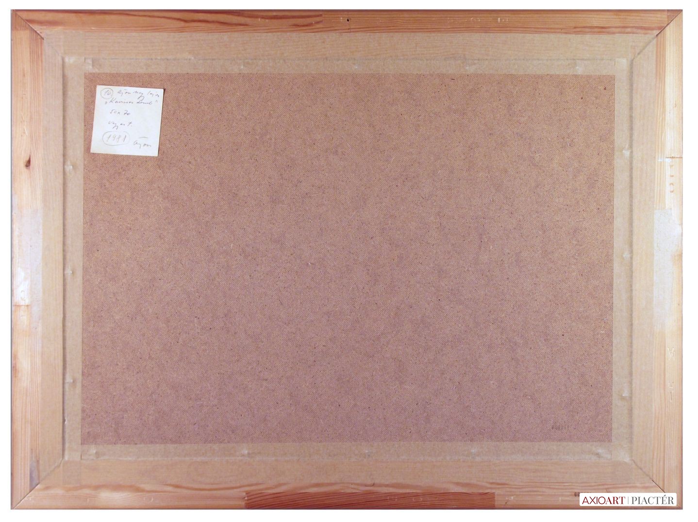 [FK2668/Bp301/4] A kép mérete: 50,5 x 80,5 cm keret nélkül. Készült: Olaj, Vászon A kép Moldován István (Kolozsvár, 1911) alkotása. Jelezve Jobbra lent "Moldován István" A festmény jó állapotban van. Keret: Ép A festmény hátoldalán a Képcsarnokvállalat raglapja láltható. Magyar festők és grafikusok életrajzi lexikona I-II. Festő. Tanulmányait Kolozsvárott, a Szépművészeti Főiskolán kezdte 1930-ban. A következő esztendőben a nagybányai Szépművészeti Iskolában Thorma János és Krizsán János korrektúráján képezte magát. 1931-ben a budapesti Képzőművészeti Főiskola hallgatója lett. Réti István, később Szőnyi István volt a mestere. Már mint főiskolás sok díjat és kitüntetést nyert. 1948-ban megkapta a római ösztöndíjat, de lemondva róla, Erdélybe ment. 1948-1950 között Erdélyben élt, és népművészetben gazdag vidékein festett. 1943-ban Kolozsvárott, 1946-ban Gyöngyösön, 1955-ben, 1959-ben és 1962-ben a Kulturális Kapcsolatok Intézetében, illetve a Csók Galériában rendezett egyéni bemutatókat. Ezen kívül több Európai országban, az USA-ban, Kanadában és Indiában is bemutatta munkáit. Eleinte sajátos atmoszférájú, lírai tájképeket, eleven színvilágú képmásokat festett, később mondernebb, erőteljesebben szerkesztett művekkel jelentkezett. A Pécsi Tanárképző Főiskola számára mozaikot készített. Erdély szerelmese volt. A székely népművészet gazdag formavilágának hatása döntő jelentőségűvé vált sokoldalú művészetében. Műv. díjak: a Szinyei Társaság elismerő oklevele, a Főváros festészeti-díja, "Kolozsvár a képzőművészetben" II. díj, állami ösztöndíj, római ösztöndíj, a Képzőművészek Szövetsége Észak-Magyarországi festészeti díja, SZOT festészeti díj. Több murális művet (mozaik) alkotott. A Magyar Nemzeti Galéria több alkotását őrzi. (M. L.: Műv. 1967/6, RI-NM) Magyar festők és grafikusok életrajzi lexikona I-II. Műgyűjtők és kereskedők kézikönyve Festő. Tanulmányait a kolozsvári Szépművészeti Főiskolán kezdte 1930-ban. A nagybányai szabadiskolában is megfordult. Itt Thorma János és Krizsán János korrektúráján képezte magát. 1931-ben Budapesten a Képzőművészeti Főiskola hallgatója lett. Réti István, később Szőnyi István volt a mestere. Már mint főiskolás sok díjat nyert. 1948-ban megkapta a római ösztöndíjat, de lemondva róla, Erdélybe ment. 1948-1950 k. Erdélyben élt, és népművészetben gazdag vidékein festett. 1943-ban Kolozsváron, 1946-ban Gyöngyösön, 1955-ben, 1959-ben és 1962-ben a Kulturális Kapcsolatok Intézetében, illetve a Csók Galériában rendezett önálló kiállítást. Ezen kívül több Európai országban, az USA-ban, Kanadában és Indiában is bemutatta műveit. Eleinte sajátos atmoszférájú, lírai tájképeket, eleven színvilágú képmásokat festett, később mondernebb, erőteljesebben szerkesztett művekkel jelentkezett. A Pécsi Tanárképző Főiskola számára mozaikot készített. Erdély szerelmese volt. A székely népművészet gazdag formavilágának hatása döntő jelentőségűvé vált sokoldalú művészetében. 1942-ben megkapta a Szinyei Társaság elismerését, és a Főváros festészeti-díjat,1943-ban elnyerte a "Kolozsvár a képzőművészetben" c. díjat. 1947-ben állami ösztöndíjat,1948-ban a római ösztöndíjat, 1972-ben a Képzőművészek Szövetsége Észak-Magyarországi festészeti díját kapta meg. A MNG több művét őrzi. (M. L.: Műv.-1976/6) Magyar festők és grafikusok adattára Tanulmányait Kolozsvárott a Képzőművészeti Főiskolán, majd Nagybányán Thorma János és Krizsán János irányítása mellett kezdte, 1931-től Budapesten megszakításokkal a Képzőművészeti Főiskolán Réti István és Szőnyi István növendékeként fejezte be. 1949-ben és 1950-ben ösztöndíjjal dolgozott Erdélyben, majd hosszú tanulmányutakra indult Nyugat-Európába, az Egyesült Államokba, s a Szovjetunióba. Először Kolozsvárott lépett a nyilvánosság elé 1943-ban, majd 1946-ban Egerben és Gyöngyösön, 1947-ben Miskolcon, 1948-ban Hatvanban, 1955, 1961 és 1981-ben a Csók Galériában, 1959-ben a KKI-ben, 1960-ban Nagykanizsán, 1963-ban Kiskunfélegyházán, 1966-ban Debrecenben, 1969 és 1975-ben Békéscsabán, 1971-ben a Mednyánszky Teremben, 1973-ban Gyöngyösön és Debrecenben, 1977-ben Egerben, 1979-ben Veszprémben, 1983-ban Miskolcon, 1984-ben Csepelen, 1986-ban a Vigadó Galériában rendezett önálló kiállítást. Külföldi kiállításai: Moszkva, Varsó, India, Szófia, Párizs, Bukarest, Belgrád, New York, Montreál és Toronto. Eddig közel kétezer színes táblaképet festett, de szívesen foglalkozik mozaikkészítéssel is. 1964-ben a Pécsi Pedagógiai Főiskola, 1968-ban a Salgótarjáni Kórház, 1969-ben a názáreti templom és 1970-ben a Videoton Vállalat díszterme részére mozaikot készített. - Erdély szerelmese. A székely népművészet gazdag formavilágának hatása döntő jelentőségűvé vált festészetében. Olyan formanyelvet alakított ki magának, amely színvilágában és summázó formaalakításában sajátos erdélyi zamat érződik, ugyanakkor korszerűen modern is konstruktivista stílusa. Munkásságát 1942-ben a Szinyei Társaság elismerésével és a Fővárosi festészeti-díjjal, 1943-ben Római-ösztöndíjjal, 1947-ben Állam ösztöndíjjal (Románai), 1963-ben a SZOT festészeti-díjával, 1972-ben a Képzőművészek Szövetsége Észak-Magyarországi festészeti-díjával tüntették ki. - Irod.: Bíró Béla: Kolozsváry Moldován István. Erdélyi Helikon, 1943.; Felvinczi Takács Zoltán: Kolozsváry Moldován István. Kolozsvár, 1943.; Dutka Mária: Magyar Nemzet, 1961.; Maksay László: Moldován István. Művészet, 1965.; D. Fehér Zsuzsa. Moldován István, Bp. 1971.; Theisler G