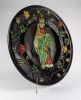 Gyönyörű, nagy méretű, plasztikusan díszített cserép falitál a XIX.-XX. század fordulójáról. "Gyárilag" kialakított akasztási lehetőséggel rendelkezik. Körben indás, rózsa minta fut kőrbe. Közepén nagy méretű Mária ábrázolás, kezében Árpád-házi Szent Erzsébet-plébániatemplom.