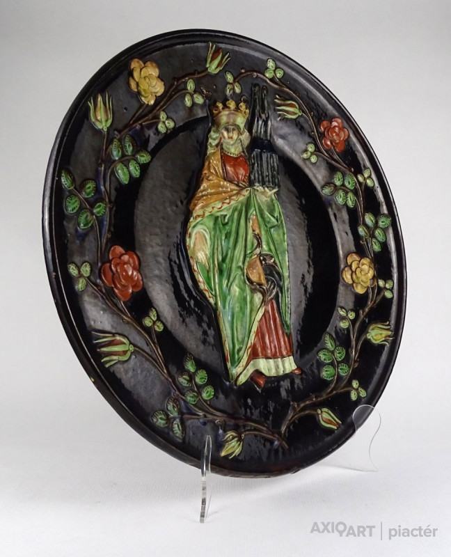 Árpád-házi Szent Erzsébet-plébániatemplom antik Steindl cserép falitál 42 cm