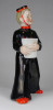 [1N487/X300] Régi, hibátlan állapotú, fekete mázas narancs cipős porcelán figura. Kivehető fejű porcelán palack, ital felszolgáló fiú. Magasság: 22.5 cm Szélesség: 13.5 cm Súly: 0.3 kg