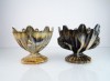 [0M291/VTR-9] Antik, szép állapotú, talpon álló, márványszerű folyatott mintával díszített, két oldalán madaras kehely alakú asztali kínáló. STS ABEL üveg kínáló az 1930-as évekből. (SJEDINJENE TVORNICE STAKLA ZAGREB YUGOSLAVIA) A világosabb színű kínáló talpánál egy kisebb lepattanás található, lásd fotó. Magasság: 15.5 cm Szélesség: 20.5 cm Súly: 2.61 kg